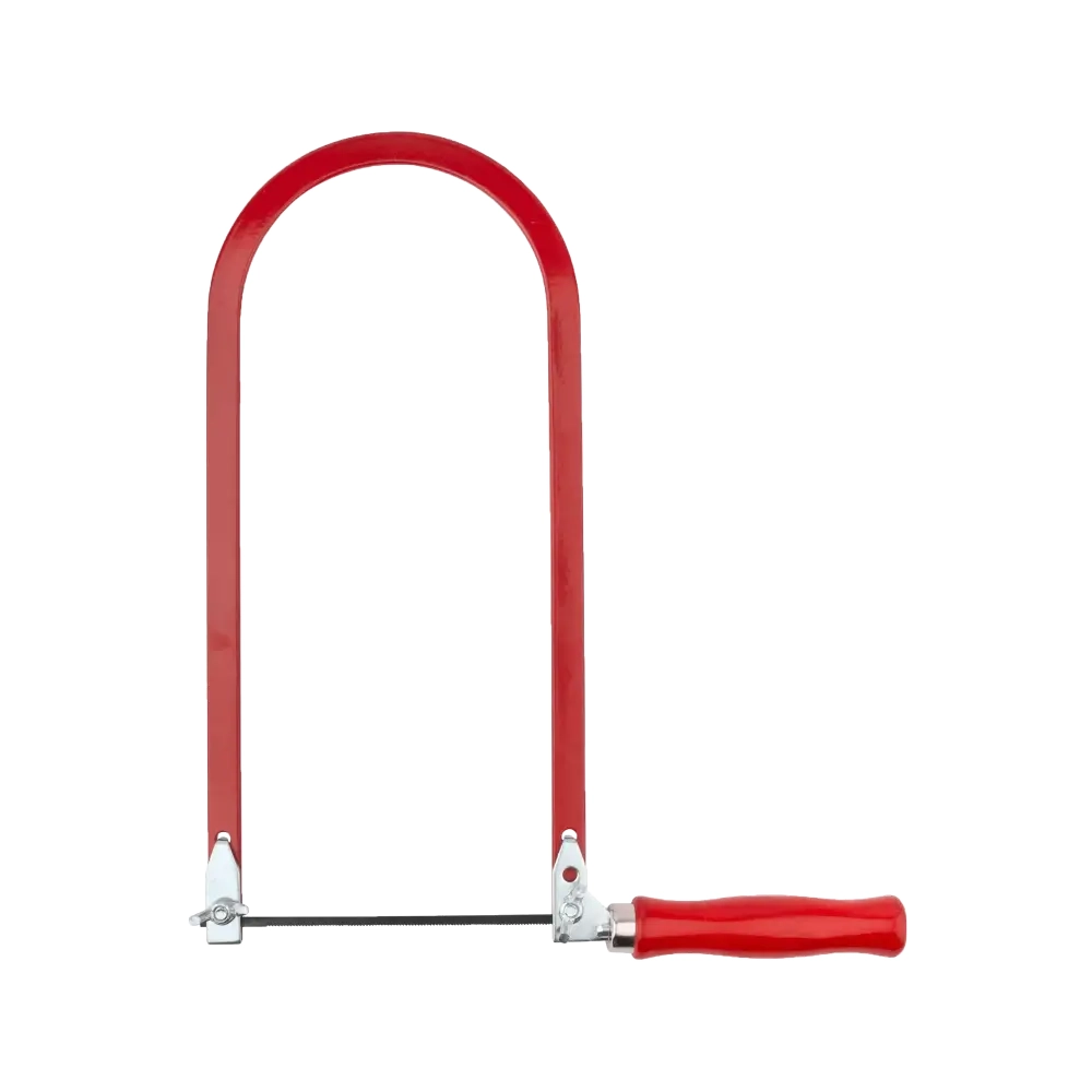 Ручной лобзик используется для выполнения небольших работ по распилу деревянных заготовок. Рабочее полотно очень прочное и износостойкое, оно изготовлено из инструментальной стали. Деревянная рукоятка обладает удобной формой и обеспечивает надежный обхват инструмента.