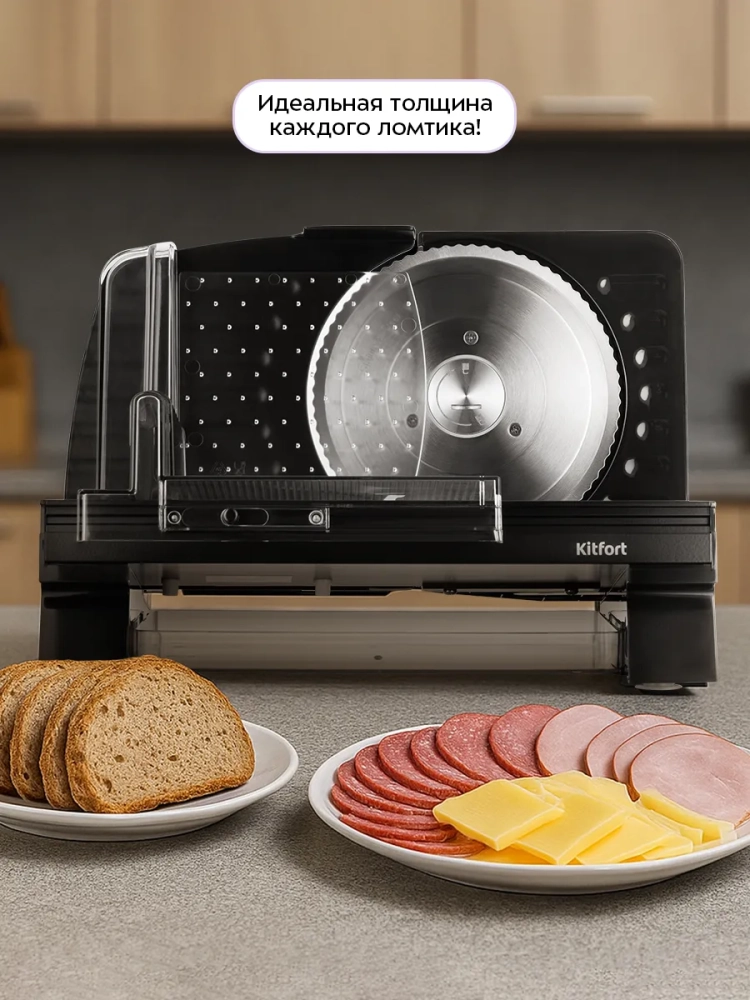 Ломтерезка Kitfort КТ-9954 предназначена для нарезки хлеба, овощей, фруктов, колбас, сыров, рыбы и готового мяса. С ее помощью можно быстро и аккуратно нарезать одинаковые ломтики для приготовления различных блюд. Вы можете подготовить овощи, фрукты или мясо для сушки в духовке или сушилке. С помощью ломтерезки вы существенно сократите время нарезки и получите ровные ломтики.