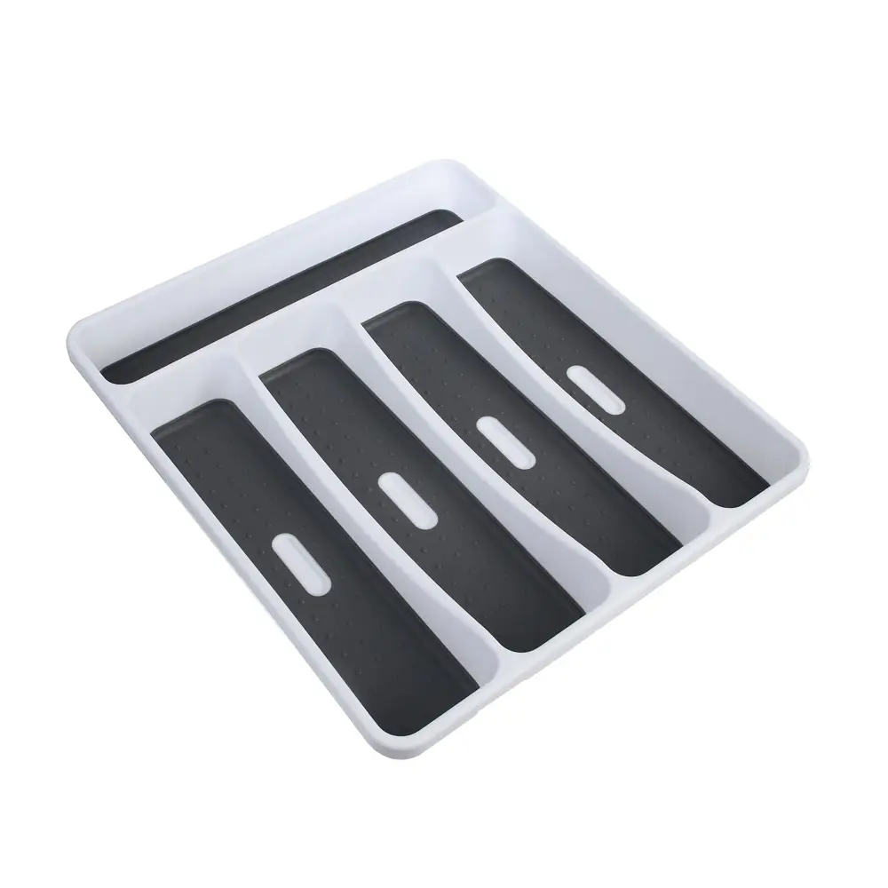 Подставка для столовых приборов VETTA — практичное решение для аккуратной организации кухонного ящика. Модель размером 32,8×29,3×4,5 см оптимально подходит для стандартных кухонных шкафов и позволяет удобно распределить столовые приборы и кухонные аксессуары. Подставка выполнена в классическом белом цвете, который гармонично вписывается в любой интерьер кухни. Пять отделений обеспечивают раздельное хранение ложек, вилок, ножей и других приборов, помогая поддерживать порядок и быстро находить нужные предметы. Прочная конструкция устойчива к ежедневному использованию и легко очищается, что делает подставку VETTA удобным и функциональным аксессуаром для повседневной кухни.