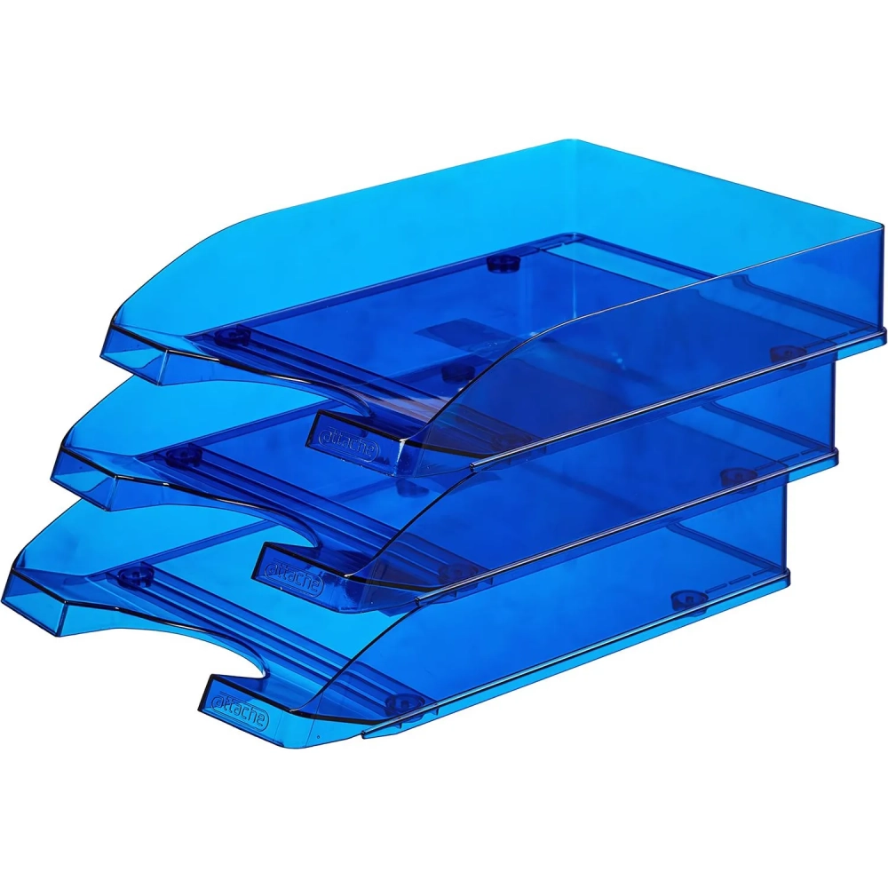 Лоток горизонтальный Attache Line прозрачный синий 340х255х63мм