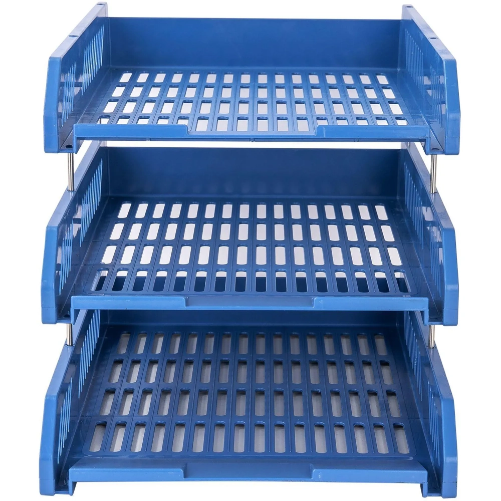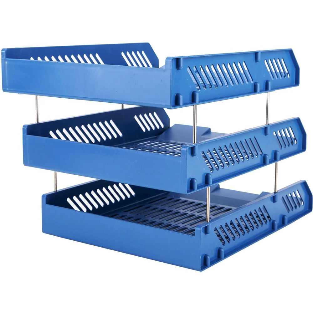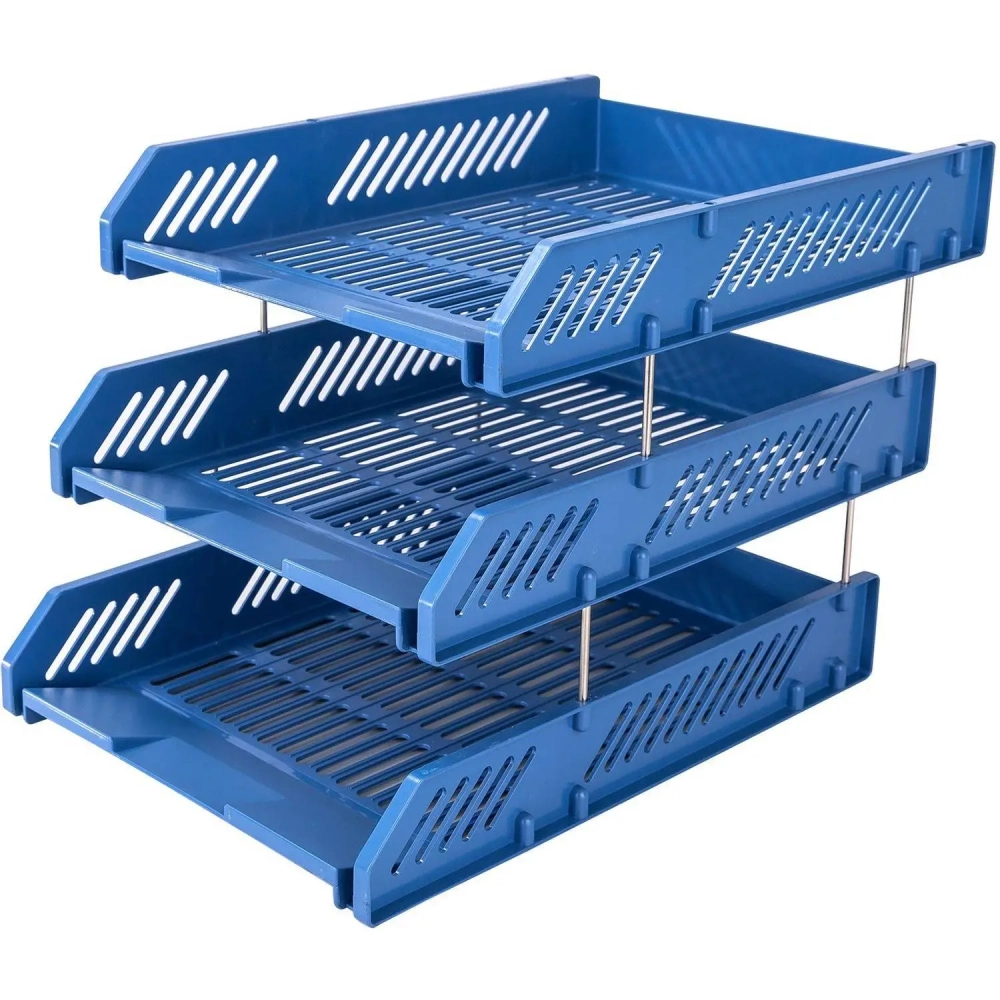 Лоток горизонтальный для бумаг Deli E9209 набор 3шт на металл.стерж синий