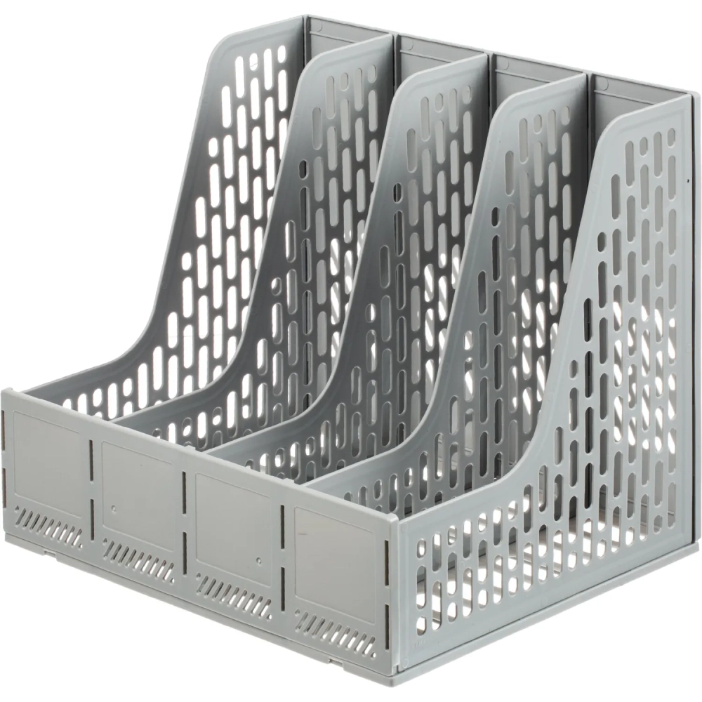 Лоток вертикальный д/бумаг Deli E9844,сбор,4отд,сер,325x257x275мм,пл