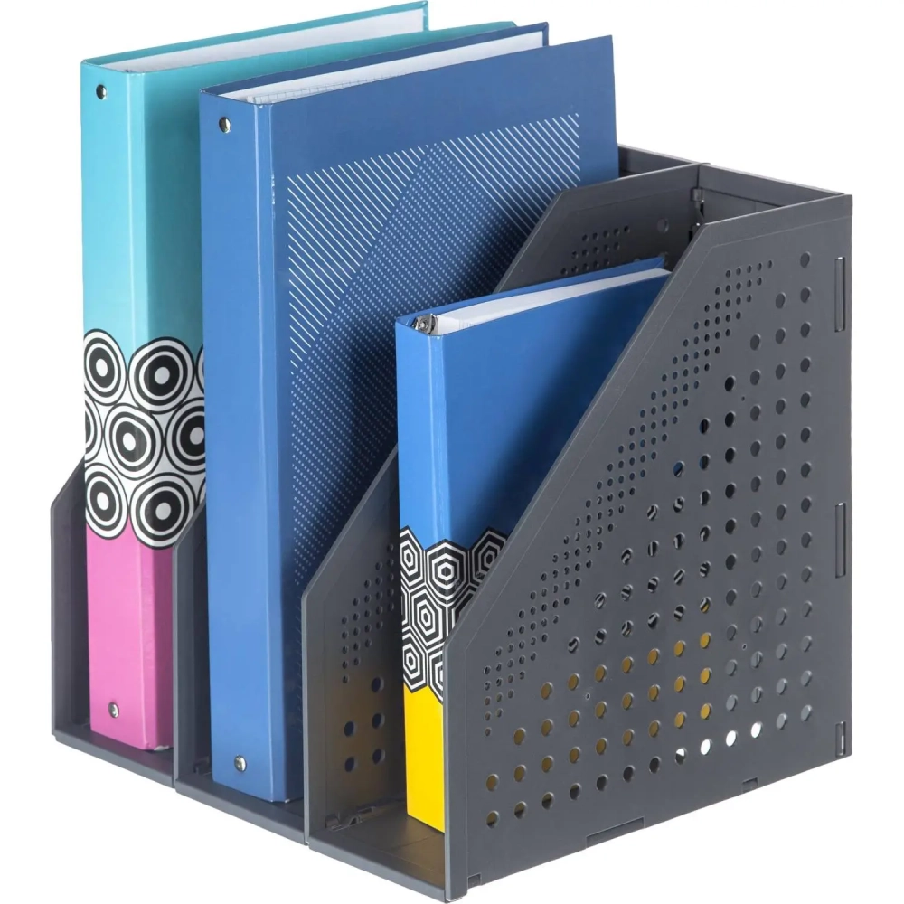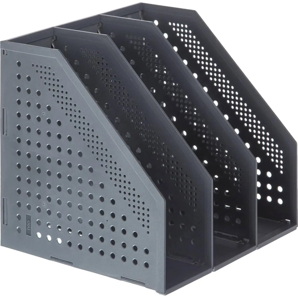 Лоток вертикальный Deli 78995DGrey складной 3 отделения темно-серый