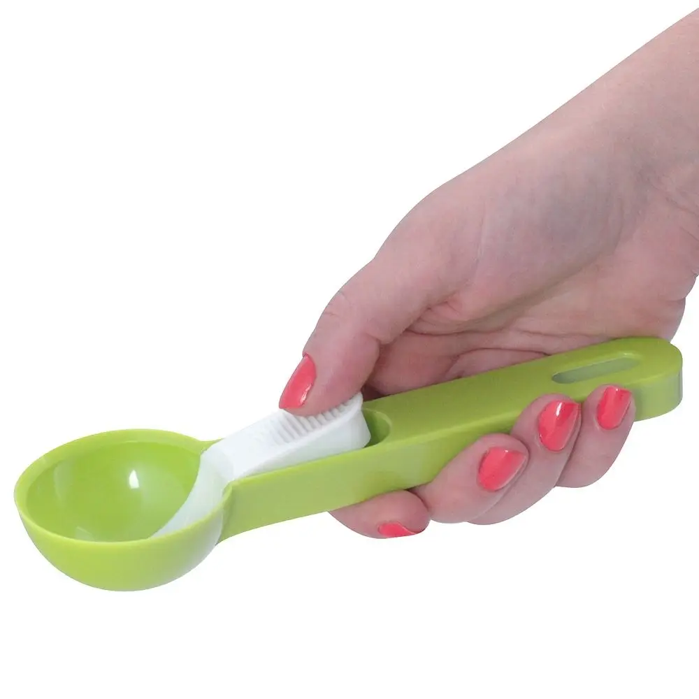 Как красиво оформить шарики мороженого? С помощью специальной ложки накладывать мороженое будет гораздо проще. Кнопка-выталкиватель позволяет одним движением вытолкнуть шарик, который не прилипнет и будет идеально ровным.