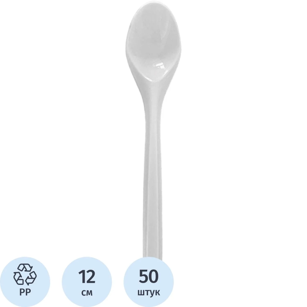 Ложка одноразовая чайная белая ПП 120 мм 50шт/уп