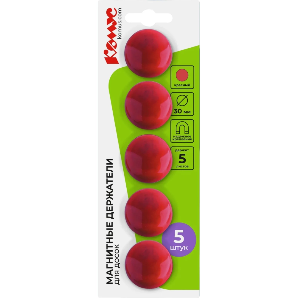 Магнитный держатель для досок Комус 30 мм, 5шт/уп. 3217 красный