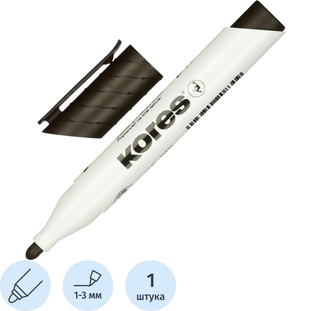Маркер для белых досок KORES черный 3 мм круглый наконечник '20830