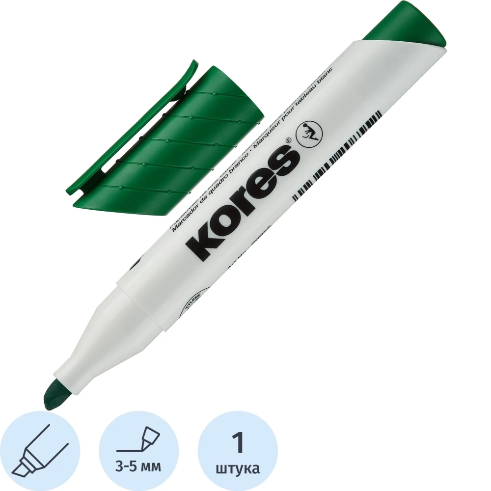 Маркер для белых досок KORES зеленый 3-5 мм скошенный наконечник 20855