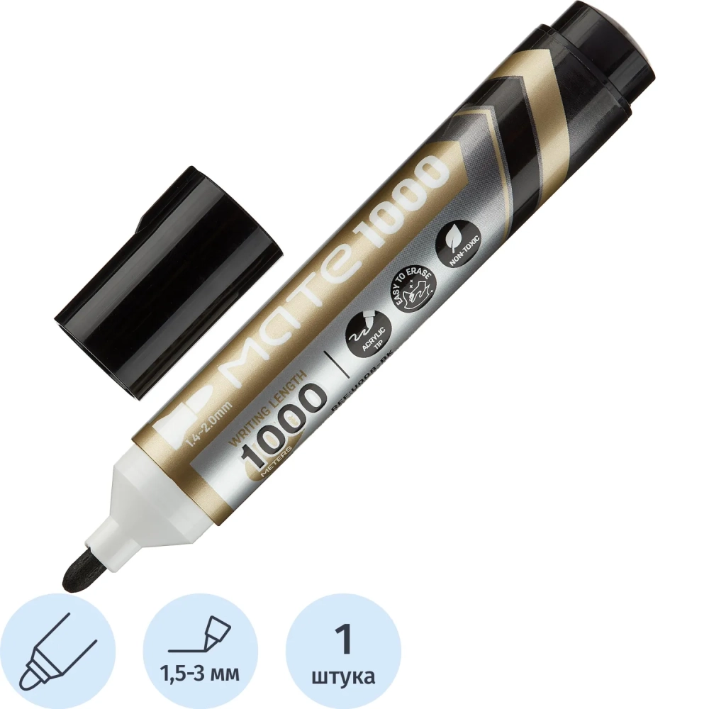 Маркер для белых досок Mate круглый наконечник, толщ.линии 2-2,5 мм, черный