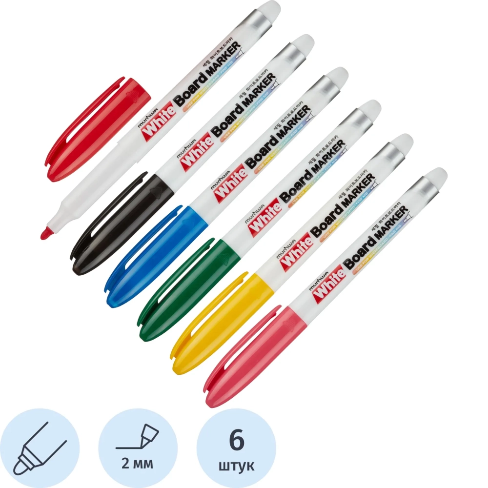 Маркер для белых досок MunHwa 2 мм набор 6 цветов