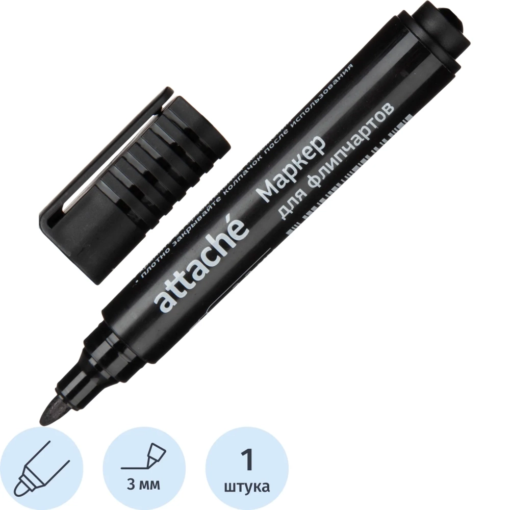 Маркер для флипчартов по бумаге Attache черный 2-3 мм круглый нак