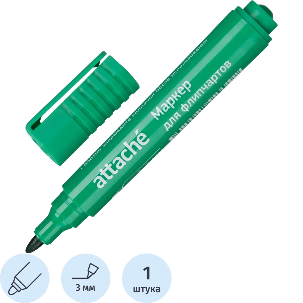 Маркер для флипчартов по бумаге Attache зеленый 2-3 мм круглый нак