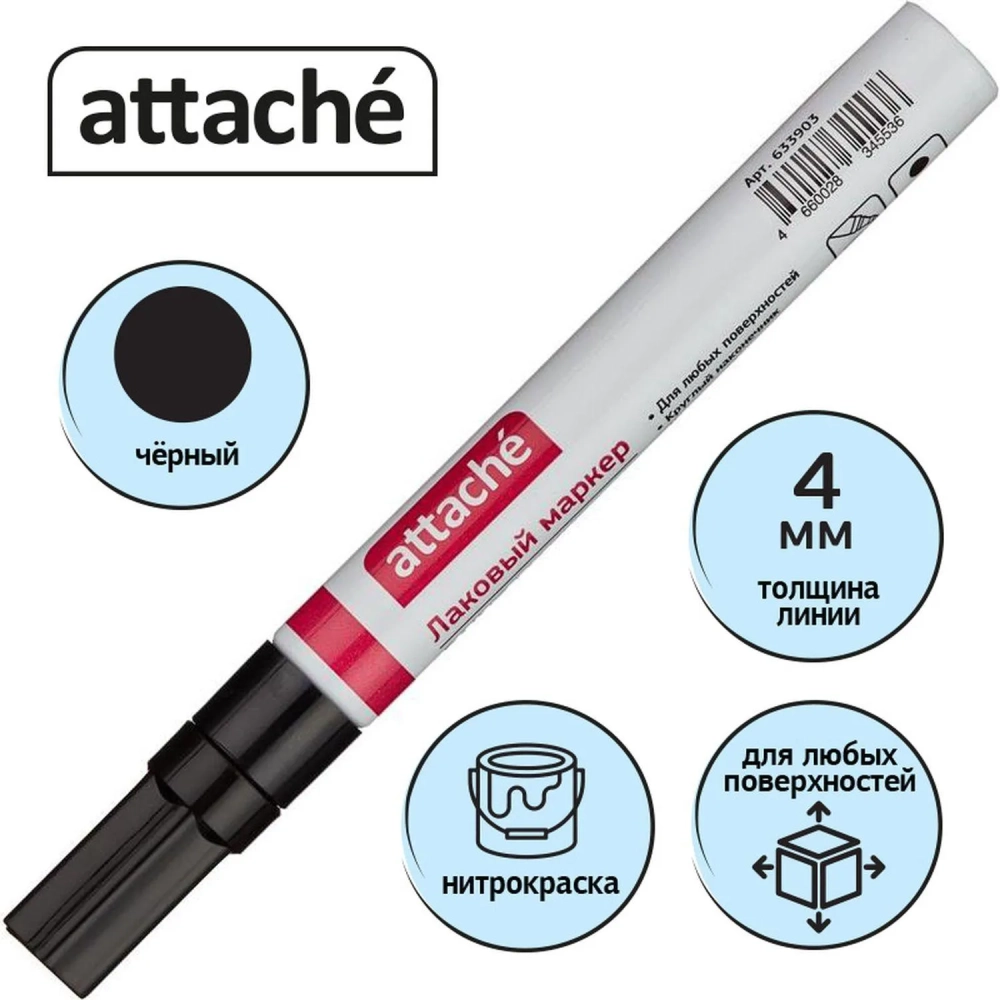 Маркер лаковый Attache 4 мм черный