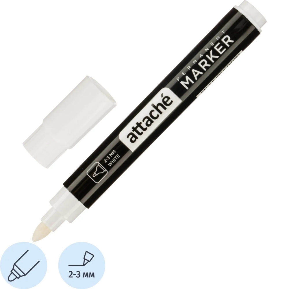 Маркер перманентный Attache, 2-3 мм, белый, кругл. наконечник, масл. основа