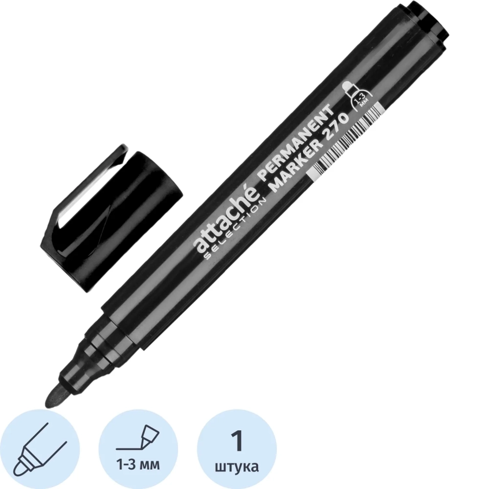 Маркер перманентный Attache Selection 270 черный 1-3мм кругл. наконечник