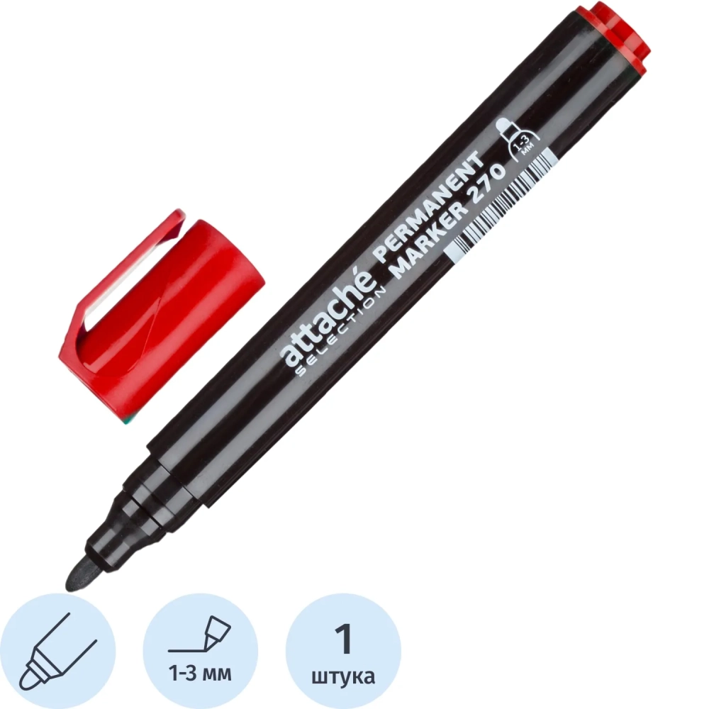 Маркер перманентный Attache Selection 270 красный 1-3мм кругл. наконечник