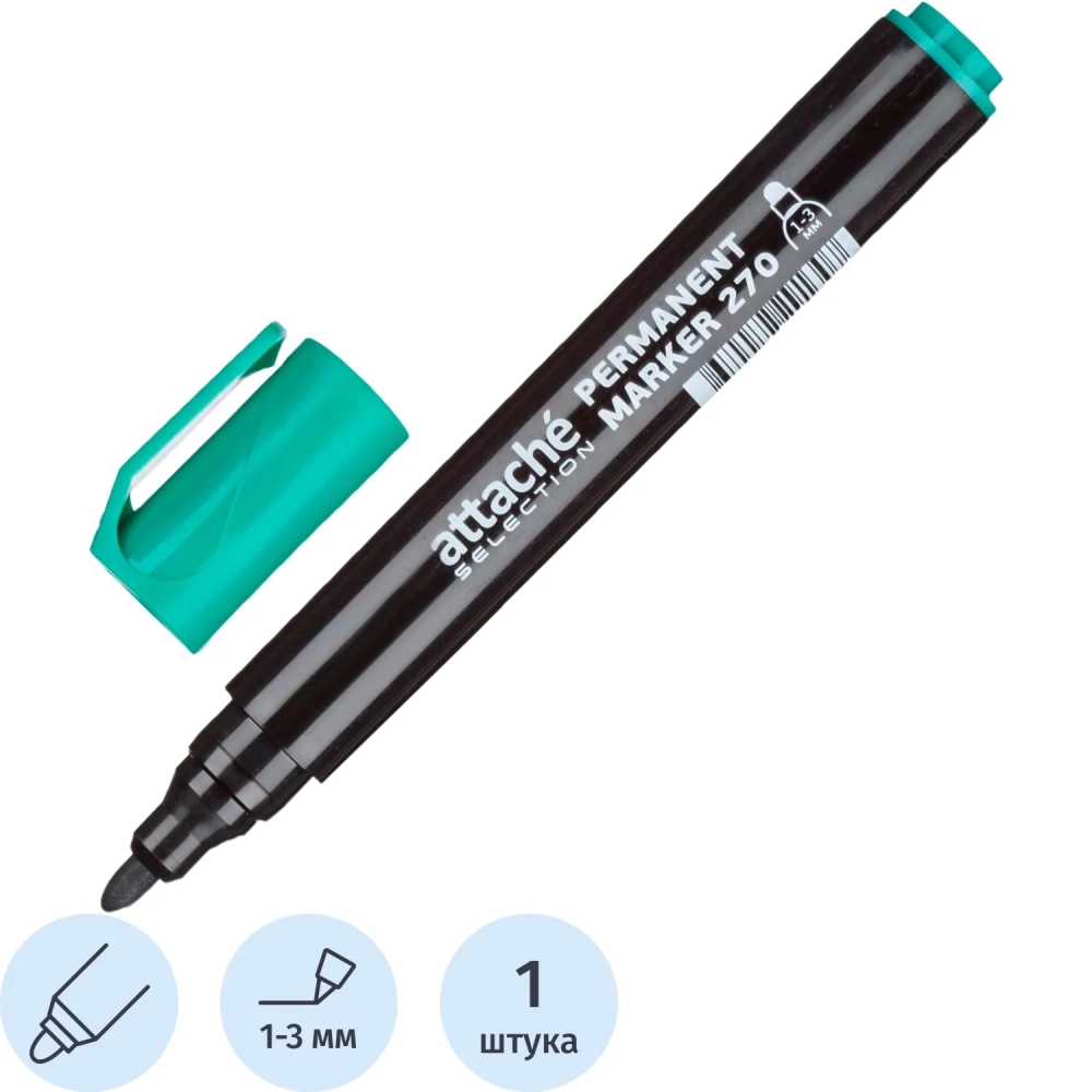 Маркер перманентный Attache Selection 270 зеленый 1-3мм кругл. наконечник