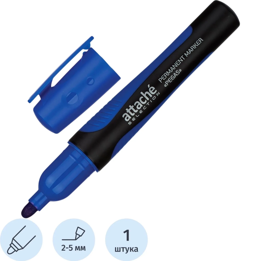 Маркер перманентный Attache Selection Pegas синий, 2-5мм