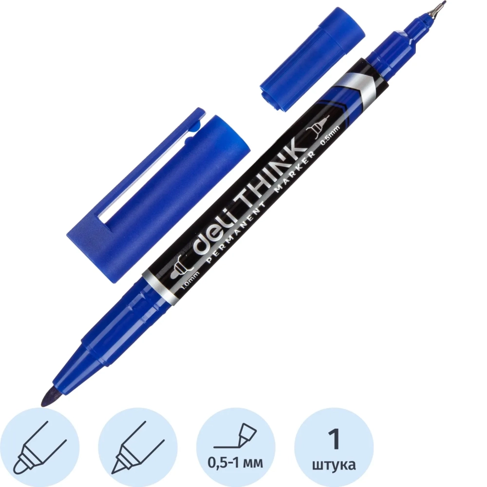 Маркер перманентный двусторонний Deli Think 0,5/1 мм синий EU211-BL
