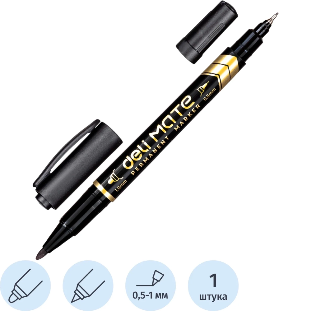 Маркер перманентный двусторонний Mate, толщина линии 0,5-1 мм, черный
