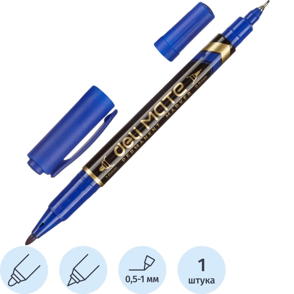 Маркер перманентный двусторонний Mate, толщина линии 0,5-1 мм, синий