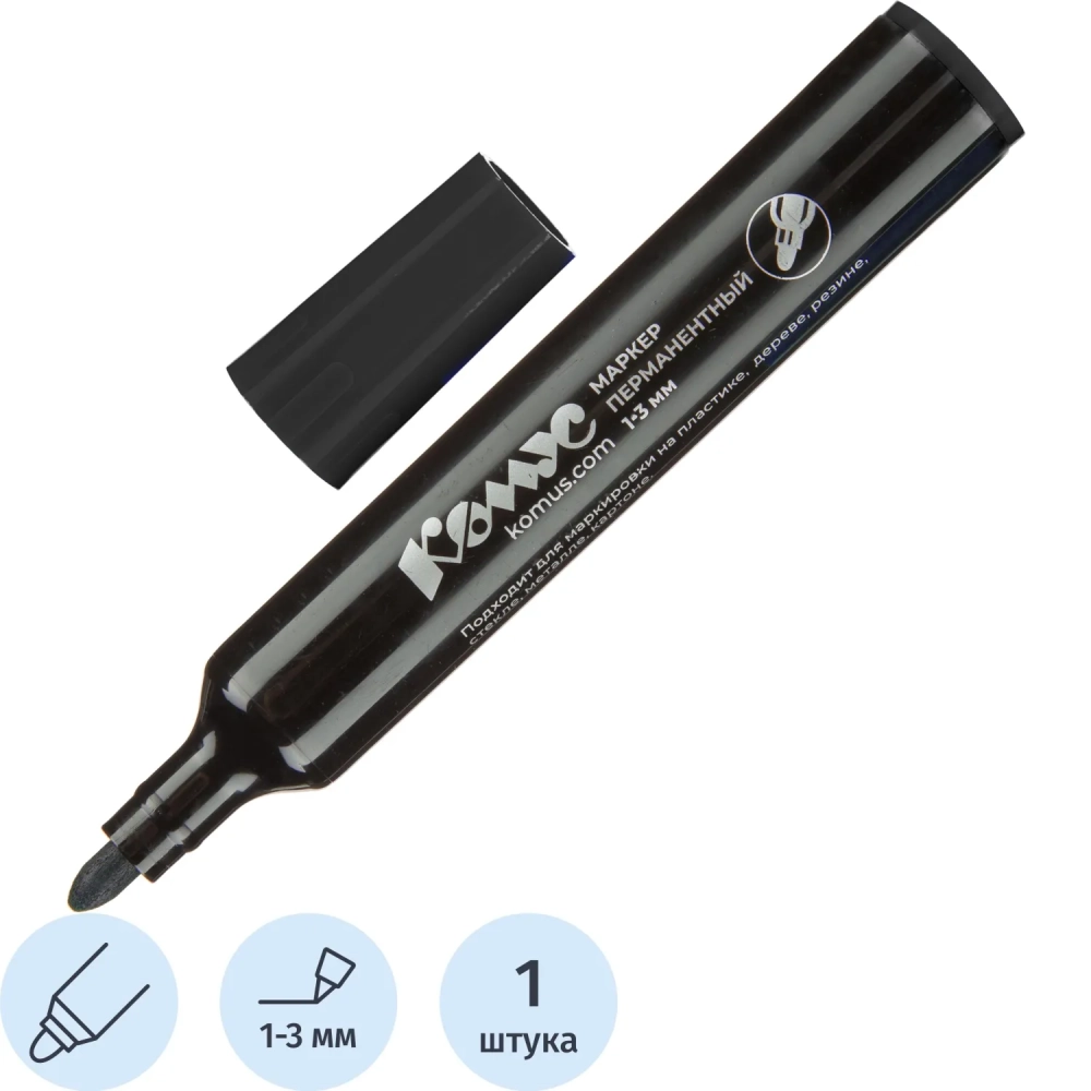 Маркер перманентный КОМУС черный 1-3мм кругл. наконечник