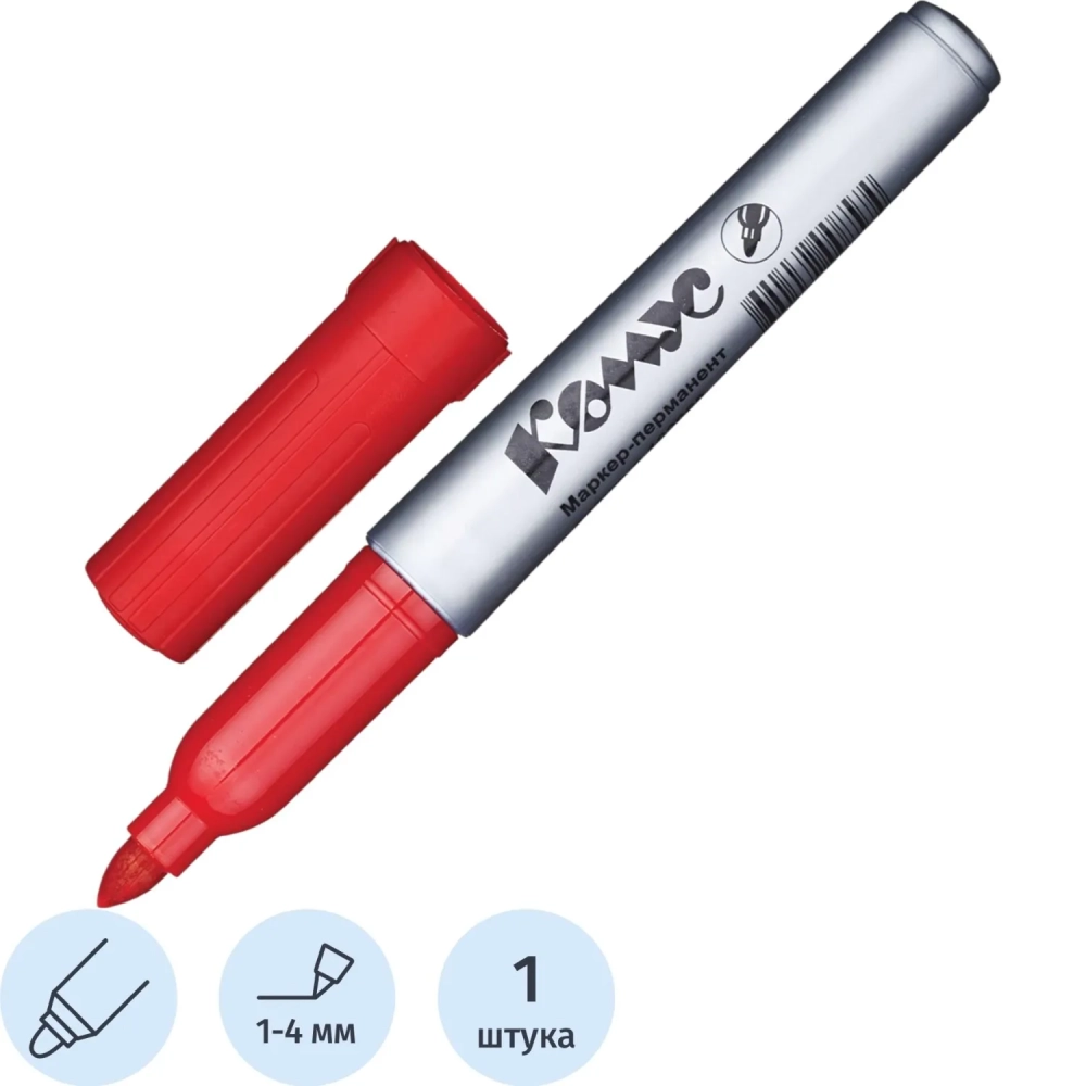 Маркер перманентный КОМУС PY2304 красный 1-4мм круглый наконечник