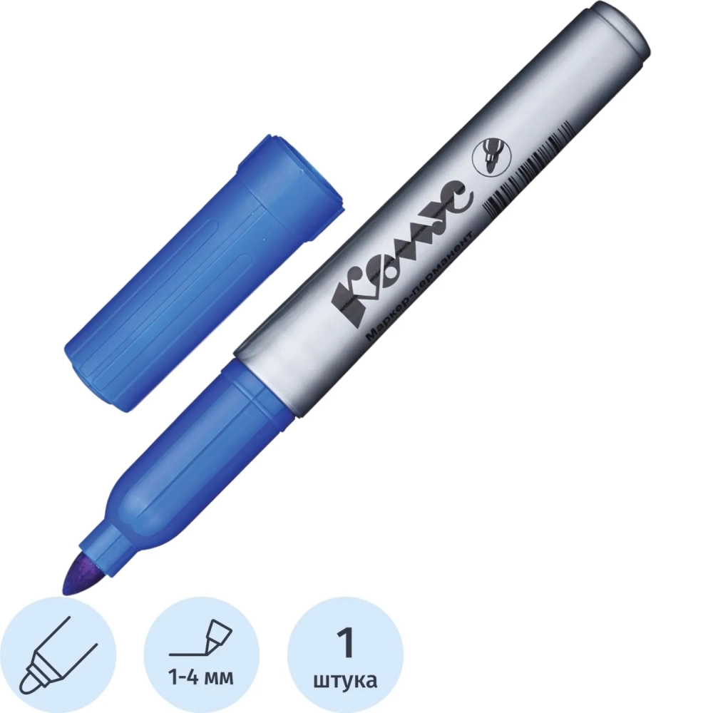 Маркер перманентный КОМУС PY2304 синий 1-4мм круглый наконечник