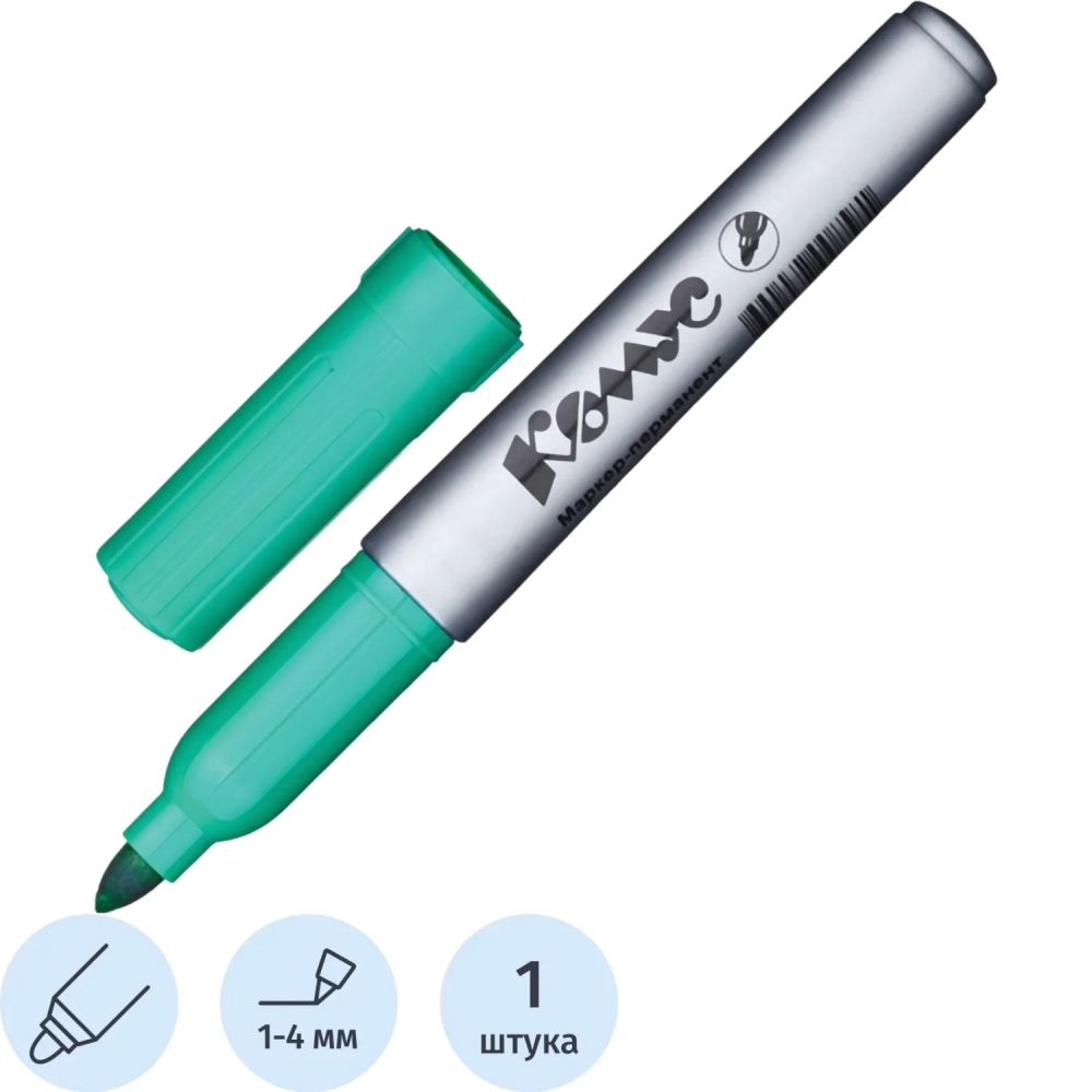 Маркер перманентный КОМУС PY2304 зеленый 1-4мм круглый наконечник