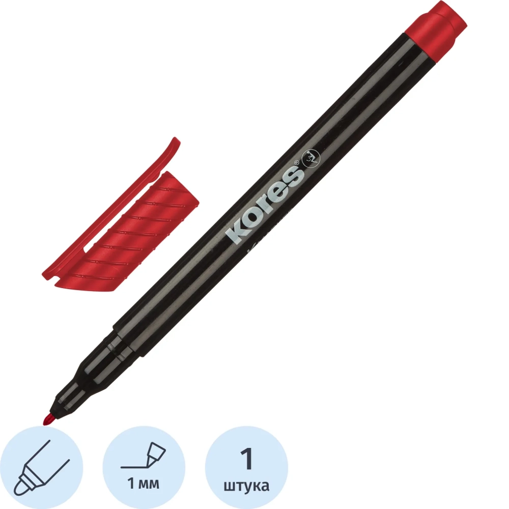 Маркер перманентный KORES красный 1 мм
