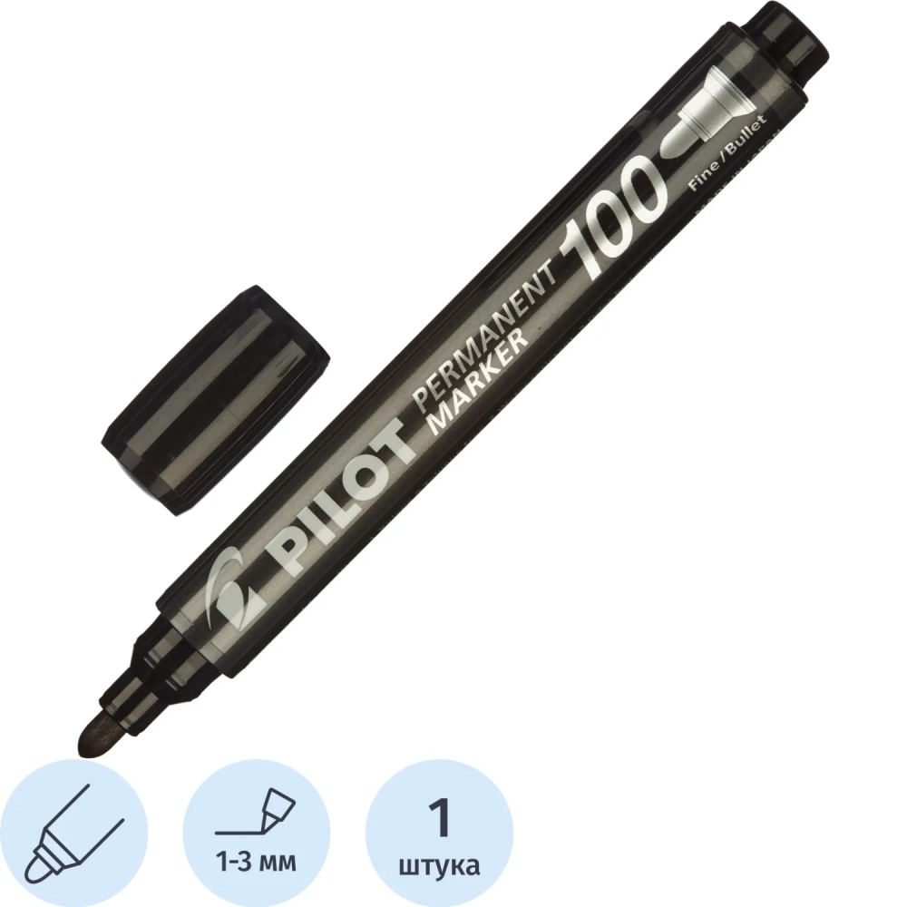 Маркер перманентный PILOT SCA-100-B черный 1-3мм круглый наконечник