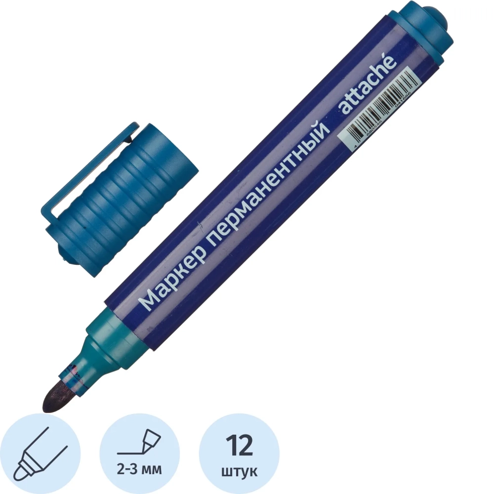 Маркер перманентный универсальный Attache Economy синий 2-3 мм