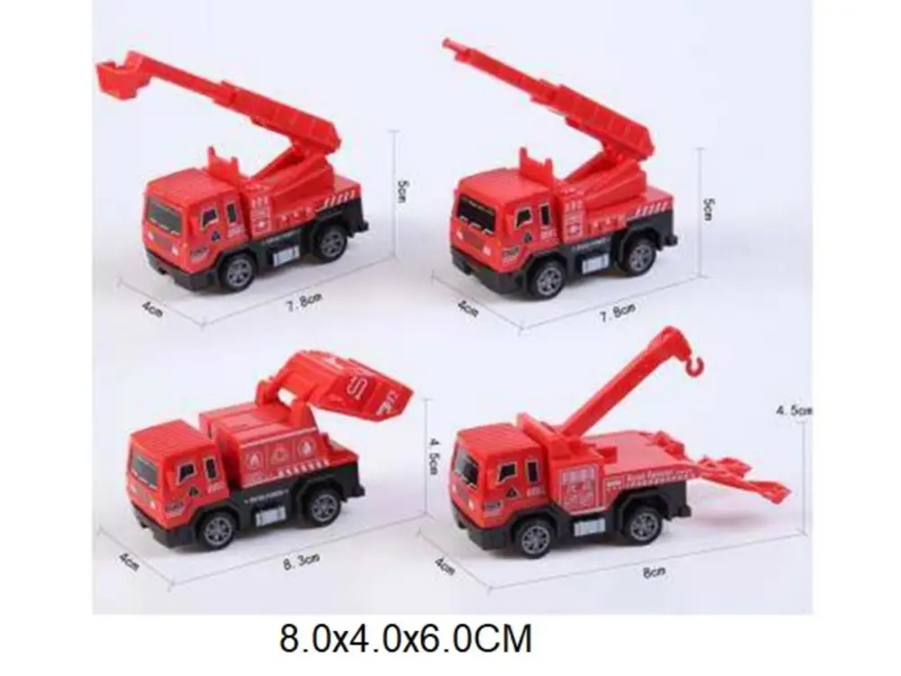 Машина инерционная пожарная 4 вида в ассортименте с подъемными механизмами. Размер 8 см.
