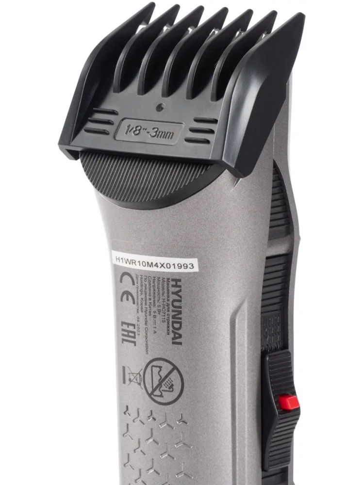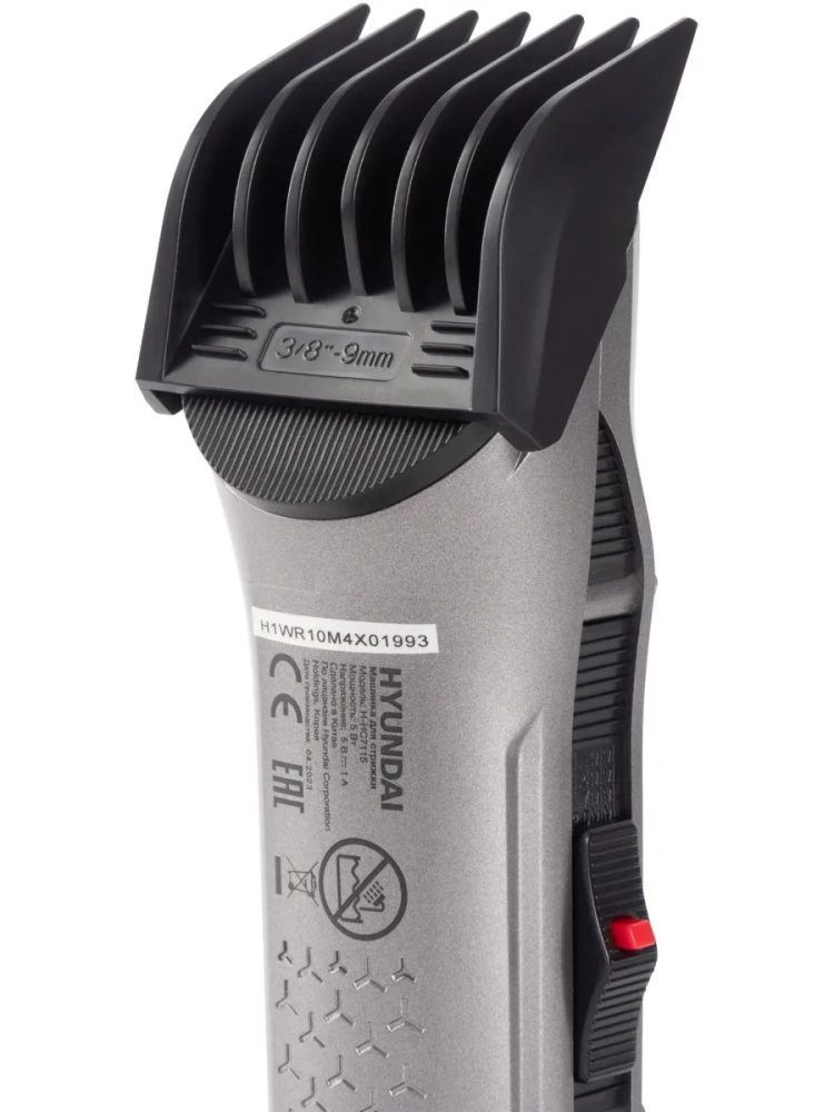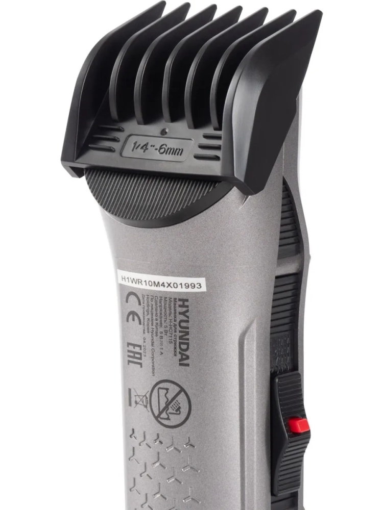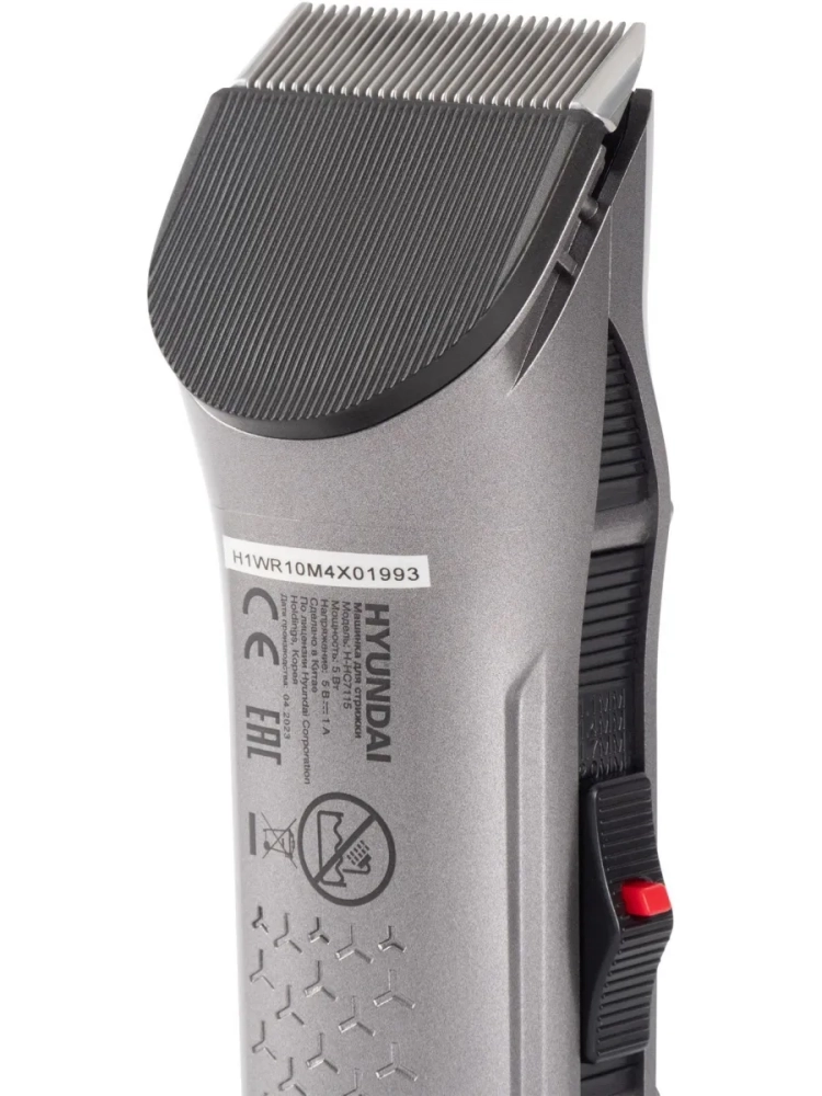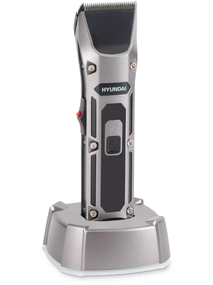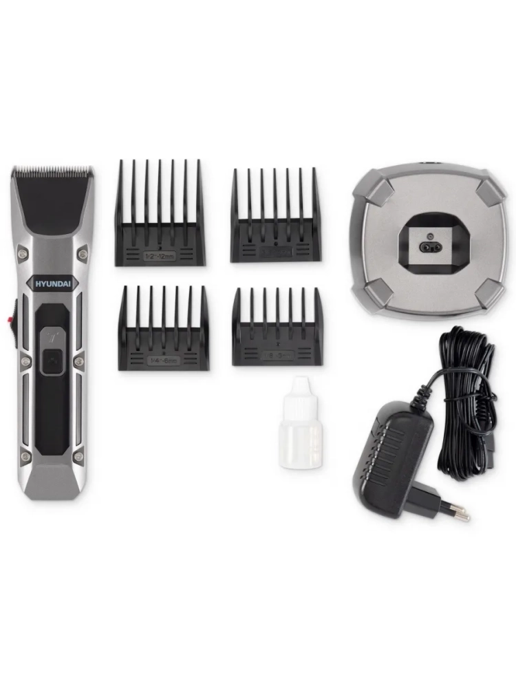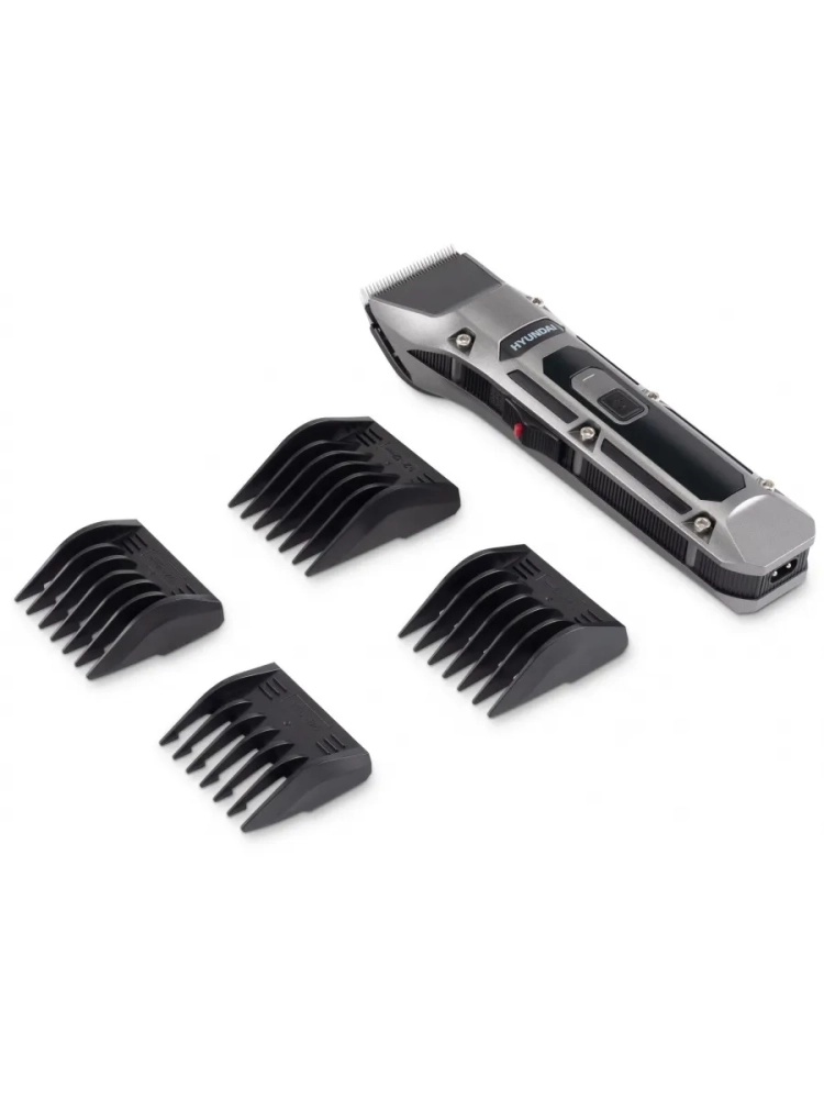 Машинка для стрижки Hyundai H-HC7115 черный, насадок в комплекте 4шт, питание от аккумулятора, зарядное устройство, масленка, подставка, щетка для чистки машинки
