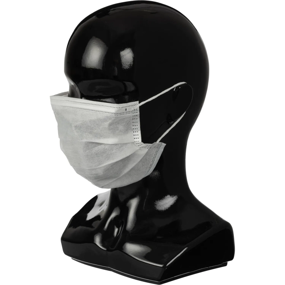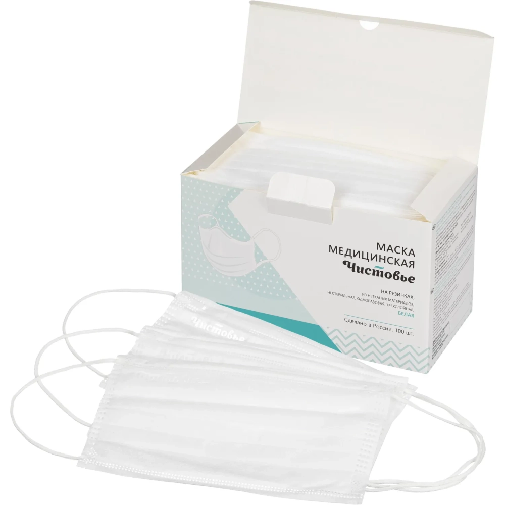Маска медицинская 3-х сл., резинка, белая, картон 100шт/уп