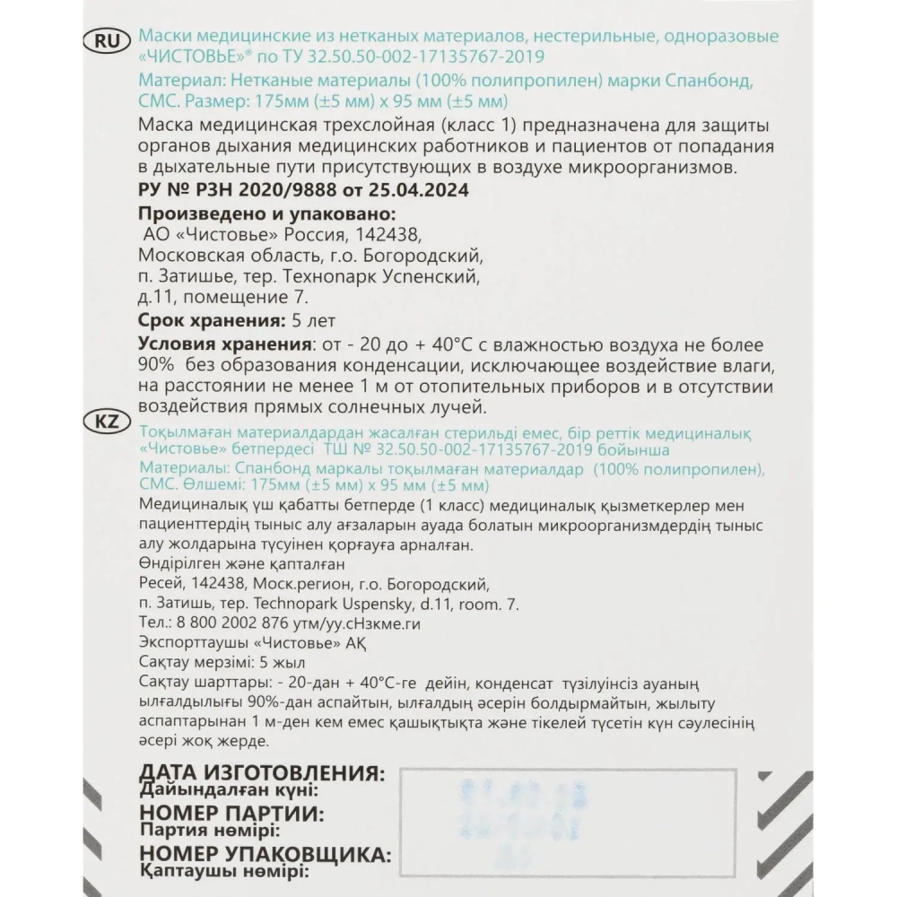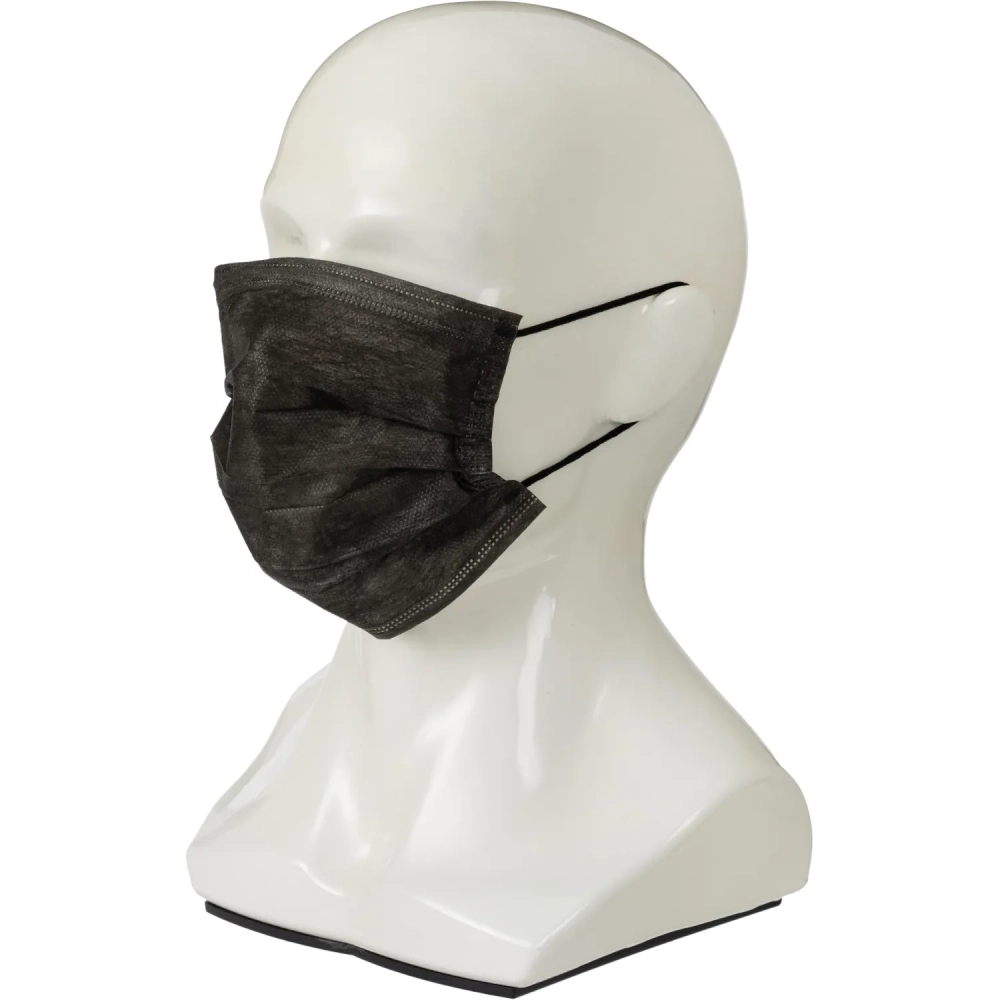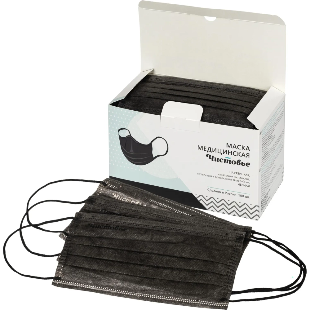 Маска медицинская 3-х сл., резинка, черная, картон 100шт/уп
