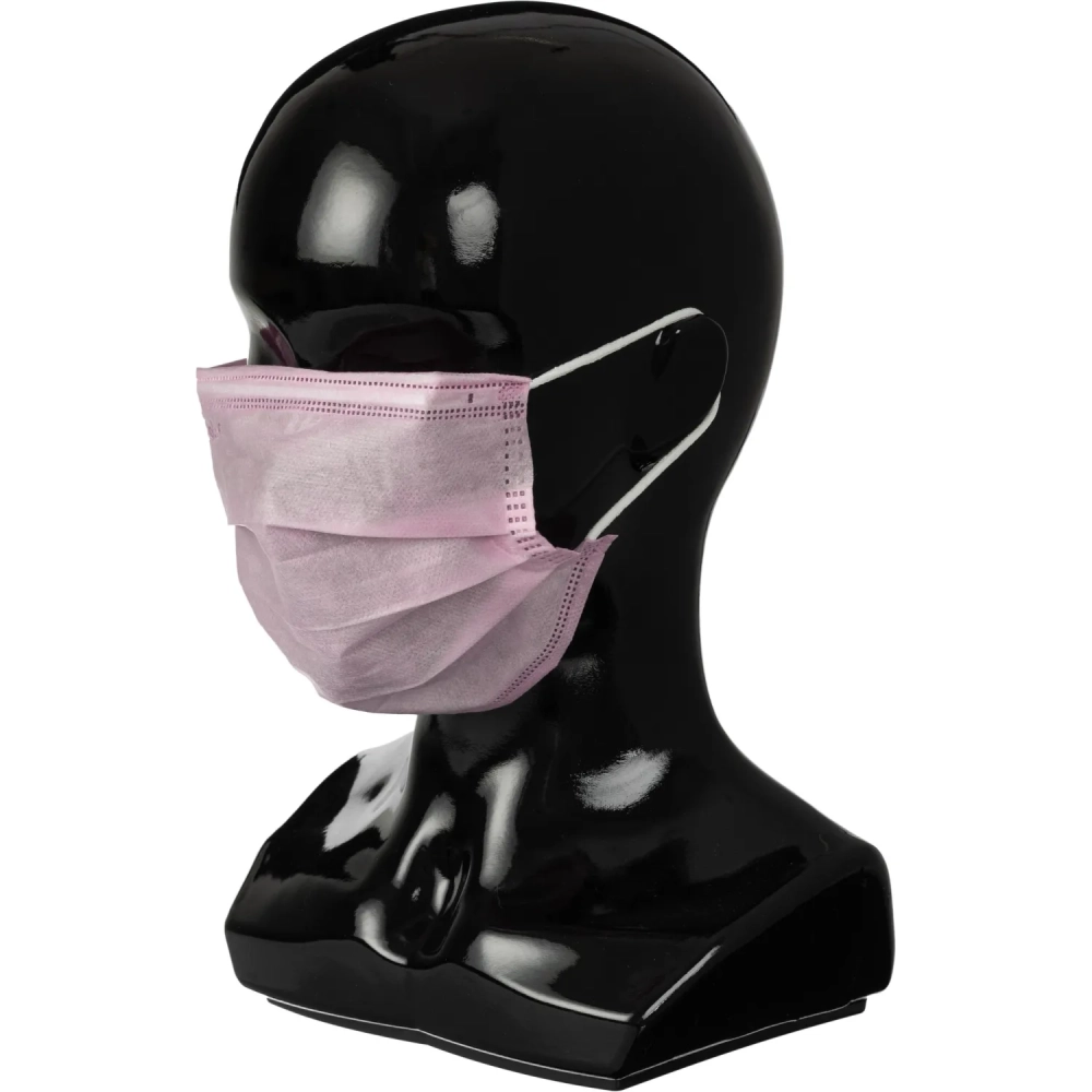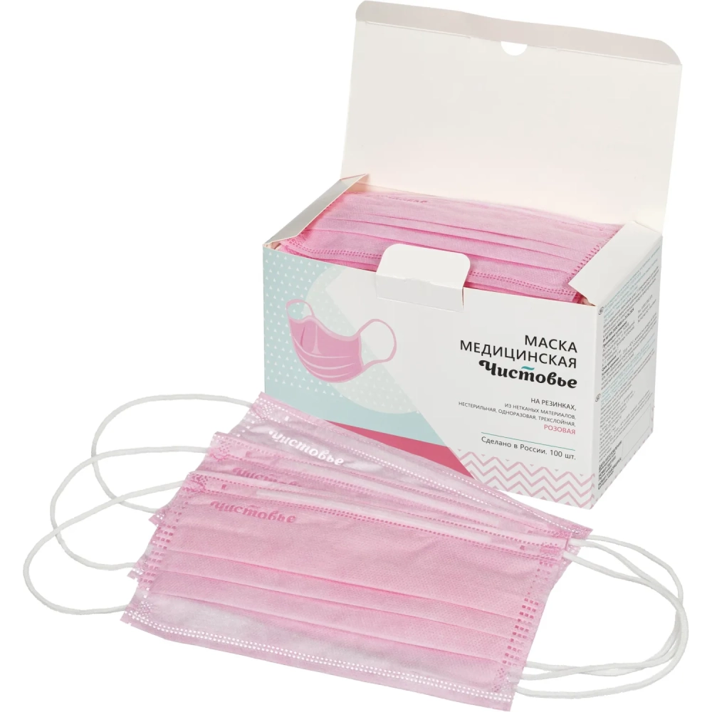 Маска медицинская 3-х сл., резинка, розовая, картон 100шт/уп