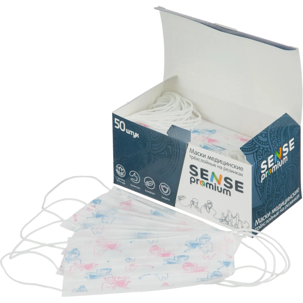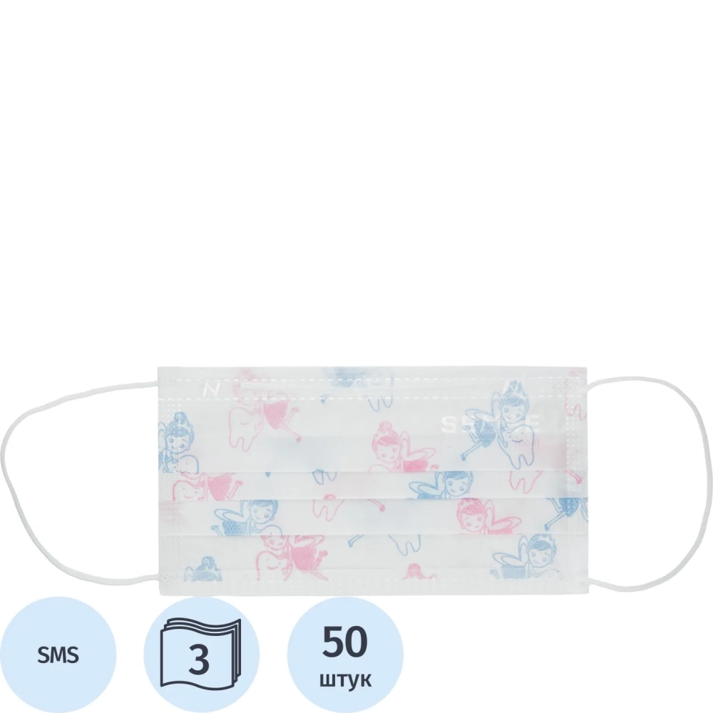 Маска медицинская 3-х сл., Sense, детская, ФЕИ, картон 50шт/уп