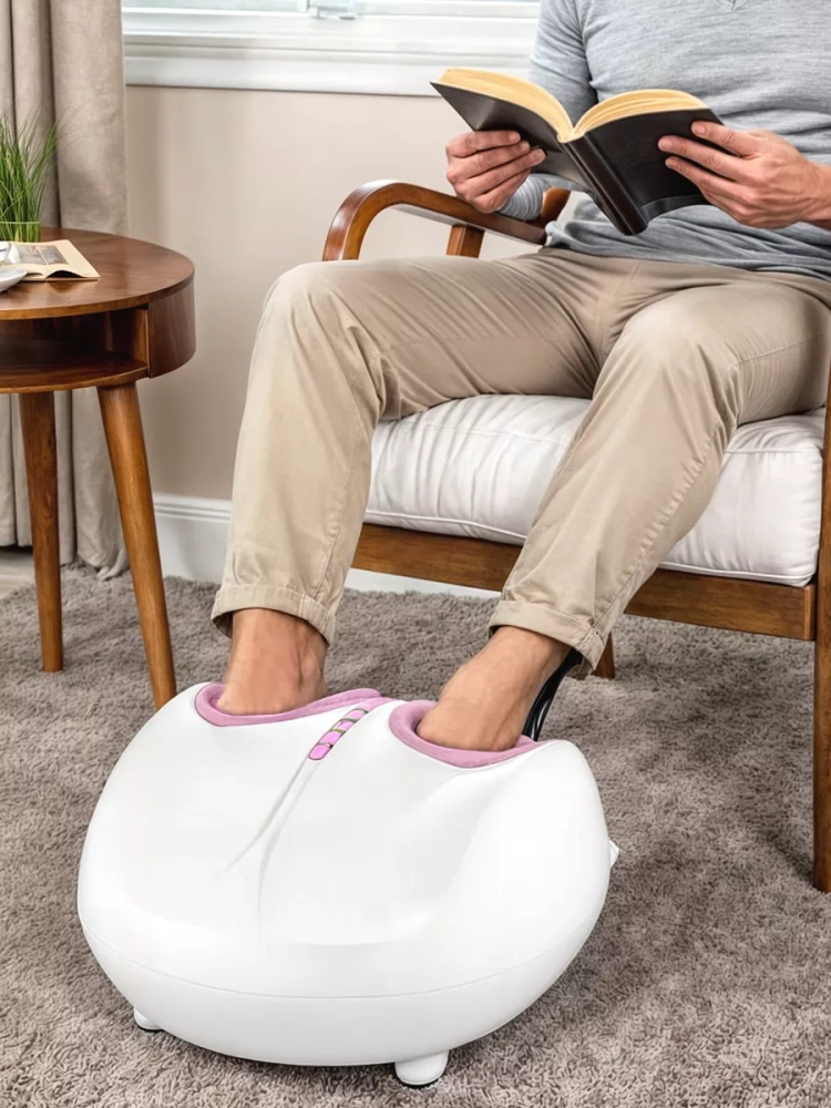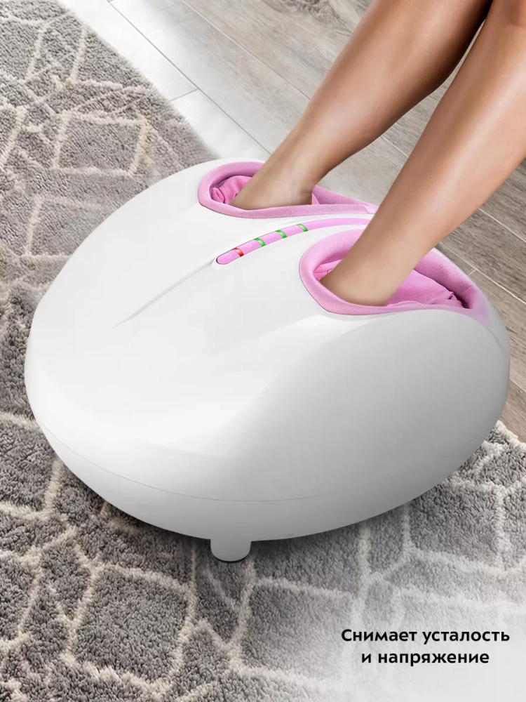 Электрический массажор оснащен функцией подогрева, что способствует улучшению кровообращения и снятию отеков. Роликовый механизм обеспечивает глубокий массаж стоп, а сжатый воздух и манжеты создают эффект прессотерапии, что усиливает воздействие на мышцы ног. Массажка с микротоковым воздействием дополнительно стимулирует нервные окончания, улучшая общее самочувствие.