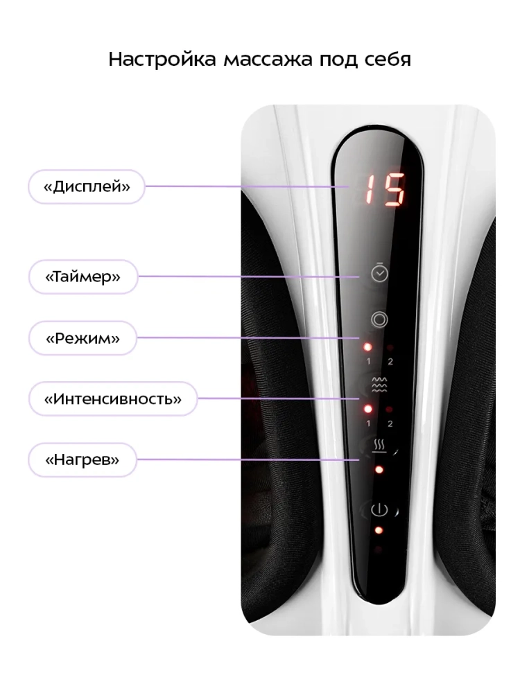 Встроенные ролики позволяют размять, а также расслабить мышцы. У устройства есть 3 режима, которые отличаются интенсивностью массажа. Разнообразие настроек поможет вам подобрать наиболее комфортный и приятный массаж.