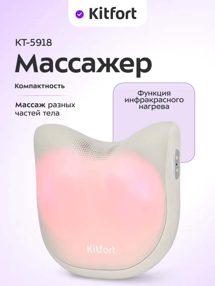 Массажер Kitfort KT-5918 выполняет массаж, помогая избавиться от дискомфорта в спине, который может возникнуть после долгого сидения за компьютером, неудобной позы во время сна или при малоподвижном образе жизни. Воздействуя на шею, позвоночник и плечи массажными роликами, массажер устраняет стресс и затекание мышц. Также устройство можно использовать для массажа поясницы, лопаток, бедер и голеней.