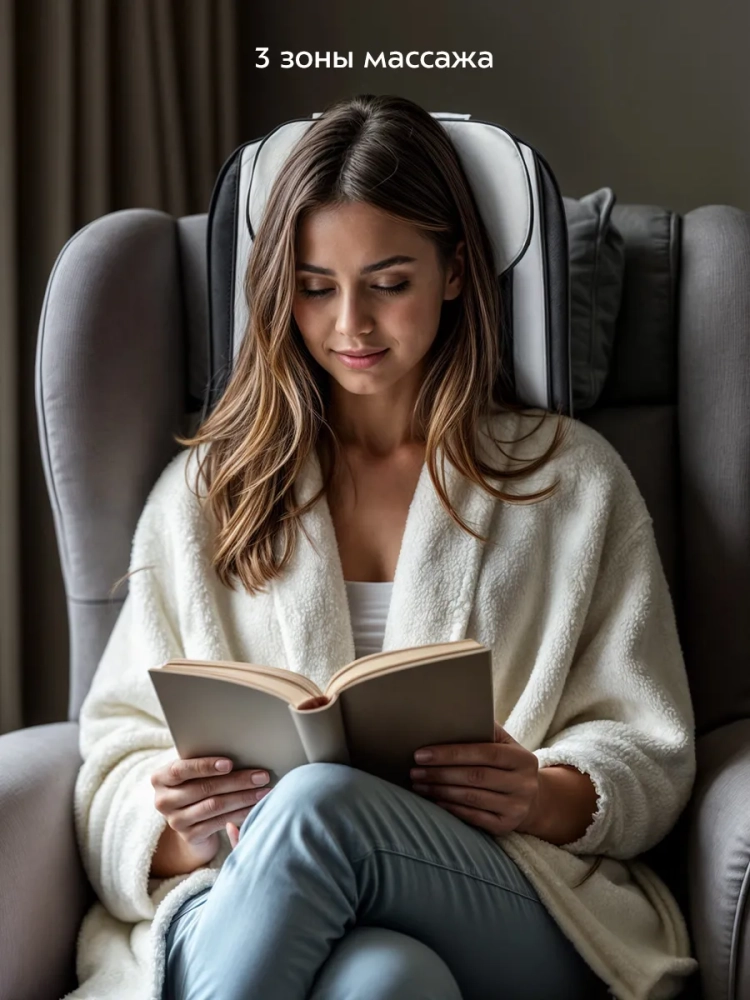 Массажер прост в управлении: расправьте его на диване или кресле с высокой спинкой и управляйте с помощью пульта, который можно убрать в карман массажера для хранения. Вы можете зафиксировать массажер резинкой, расположенной сзади массажера.