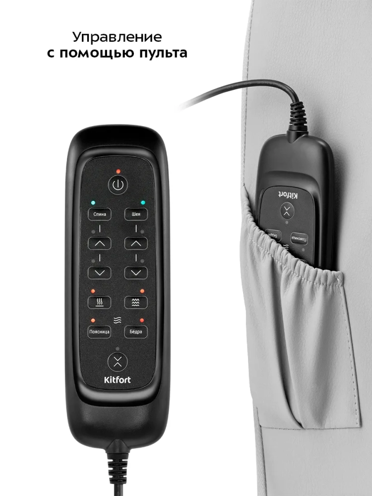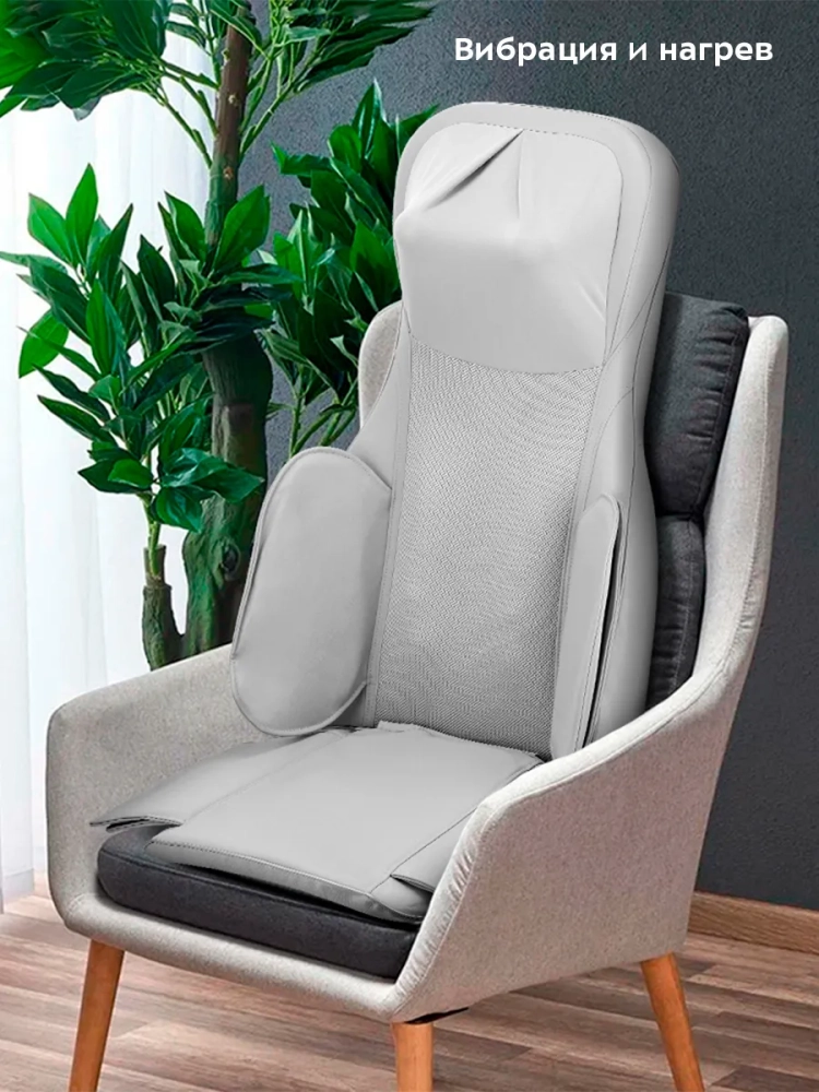 Массажер прост в управлении: расположите его на диване или кресле с высокой спинкой и управляйте с помощью пульта. Массажер можно использовать только сидя. Управление массажером осуществляется пультом управления, который можно убрать в карман для хранения на массажере.