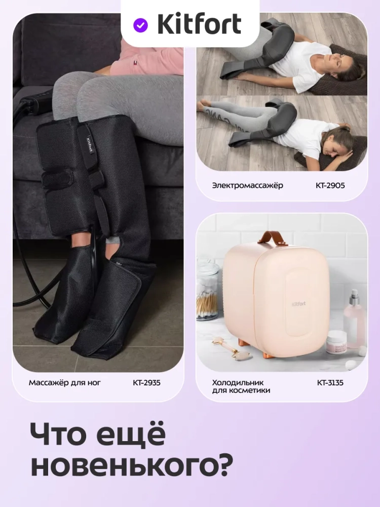 Массажер «2 в 1» Kitfort КТ-5961 позволит провести воздушно-компрессионный массаж рук и роликовый массаж шейно-воротниковой зоны, спины и ног.