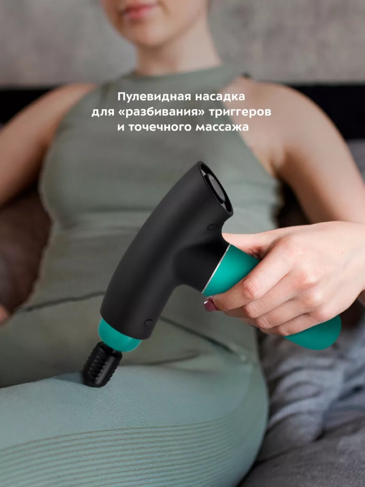 Насадки разных видов предназначены для воздействия на разные группы мышц и отдельные мышцы. Пулевидная насадка применяется для «разбивания» триггеров, проработки тканей и точечного массажа ладоней и стоп. Чрезмерное напряжение, резкие движения, растяжение провоцируют возникновение триггерных точек — плотных болезненных узлов в мышцах. Пулевидная насадка действует на проблемные зоны, прорабатывает триггеры и помогает расправить зажатые фасциальные волокна. Y-насадка используется для массажа мышц шеи, трапециевидной мышцы и мышц вдоль позвоночника. Круглая насадка более универсальная и используется почти для любых групп мышц, отлично подходит для проработки широких и крупных мышц.