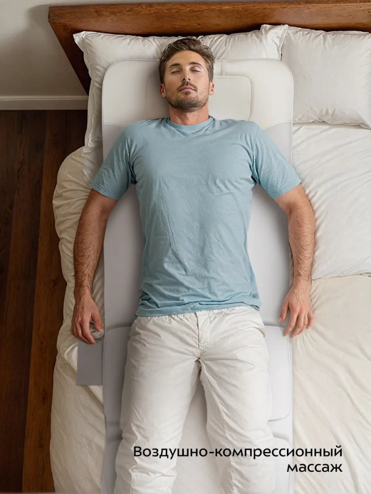 Встроенные в матрас воздушные подушки позволяют провести воздушно-компрессионный массаж. Этот вид массажа является щадящим и мягким, он также подойдет для ежедневного использования.