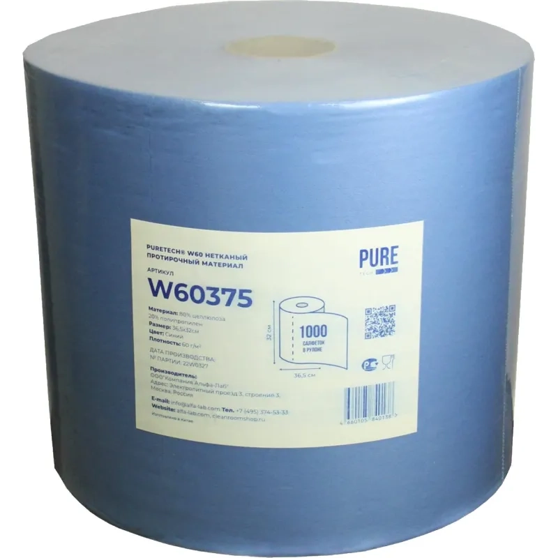 Материал протирочный нетканый Puretech 60г/м2 синий 36,5х32см 1000л W60375