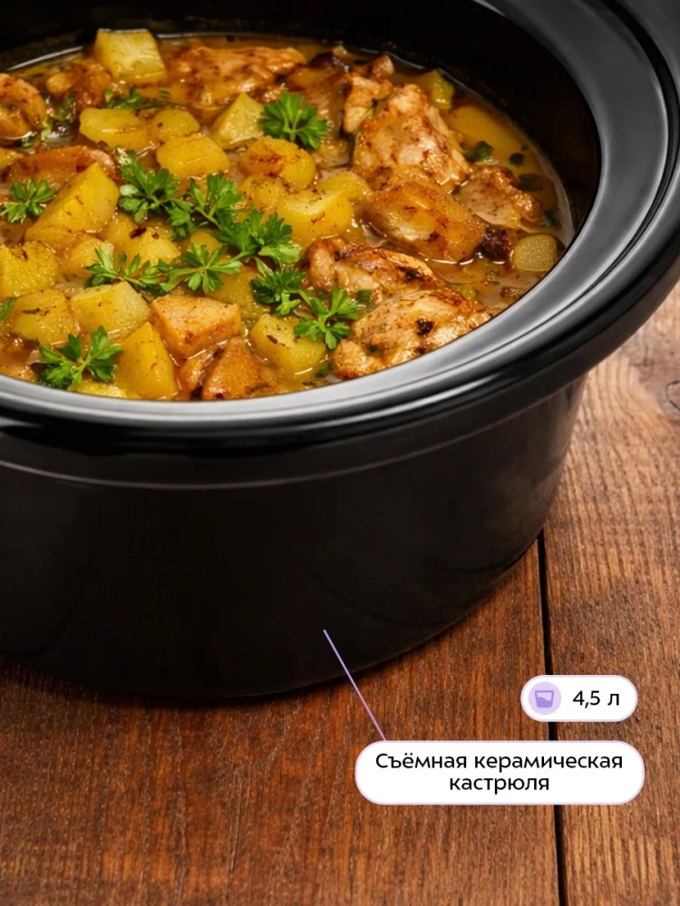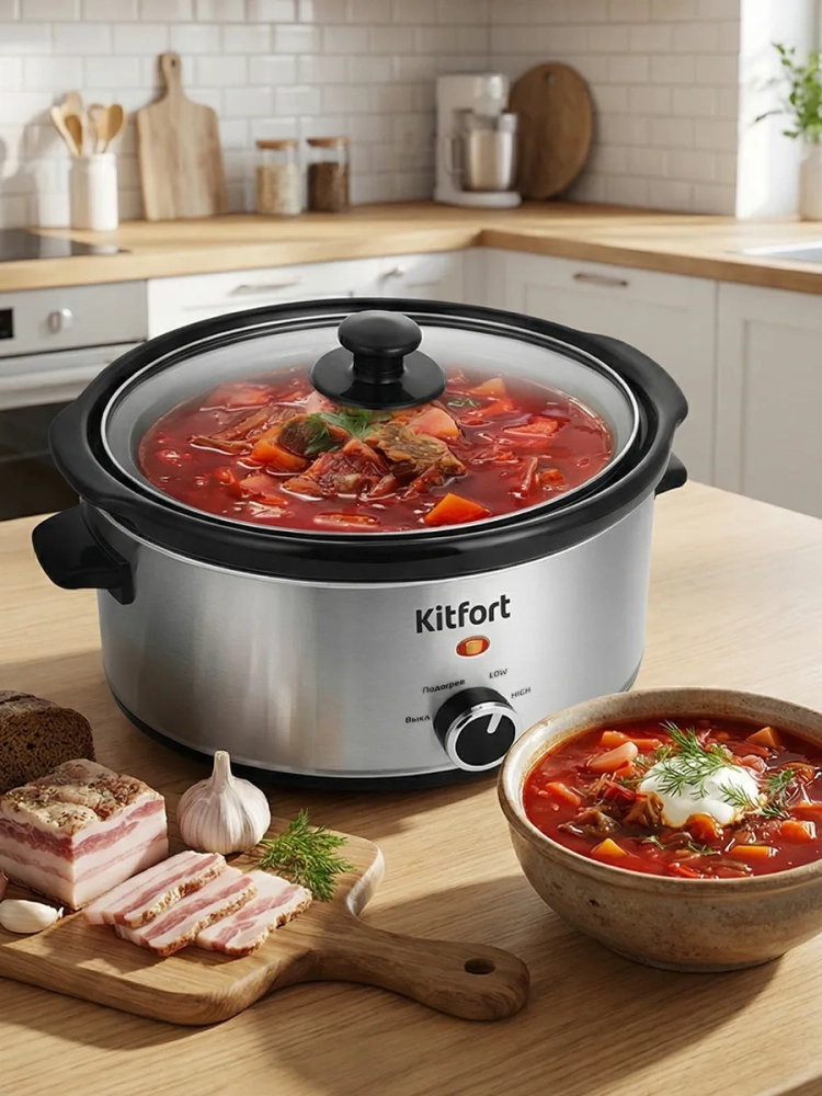 Эта техника станет идеальным дополнением вашей кухни, предлагая широкие возможности для кулинарных экспериментов. Бытовая медленноварка — это не просто техника, это инвестиция в ваше здоровье и комфорт на вашей кухне. Благодаря Kitfort, вы получаете надежного помощника, который подчеркнет ваши гастрономические предпочтения и откроет новые горизонты в домашней готовке.
