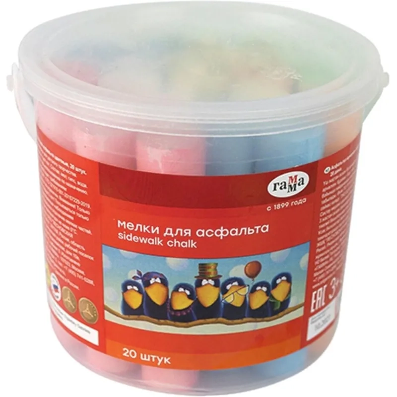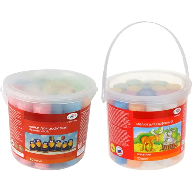 Мел для асфальта Гамма Мультики 20 цв., пластик. ведро, 1704194