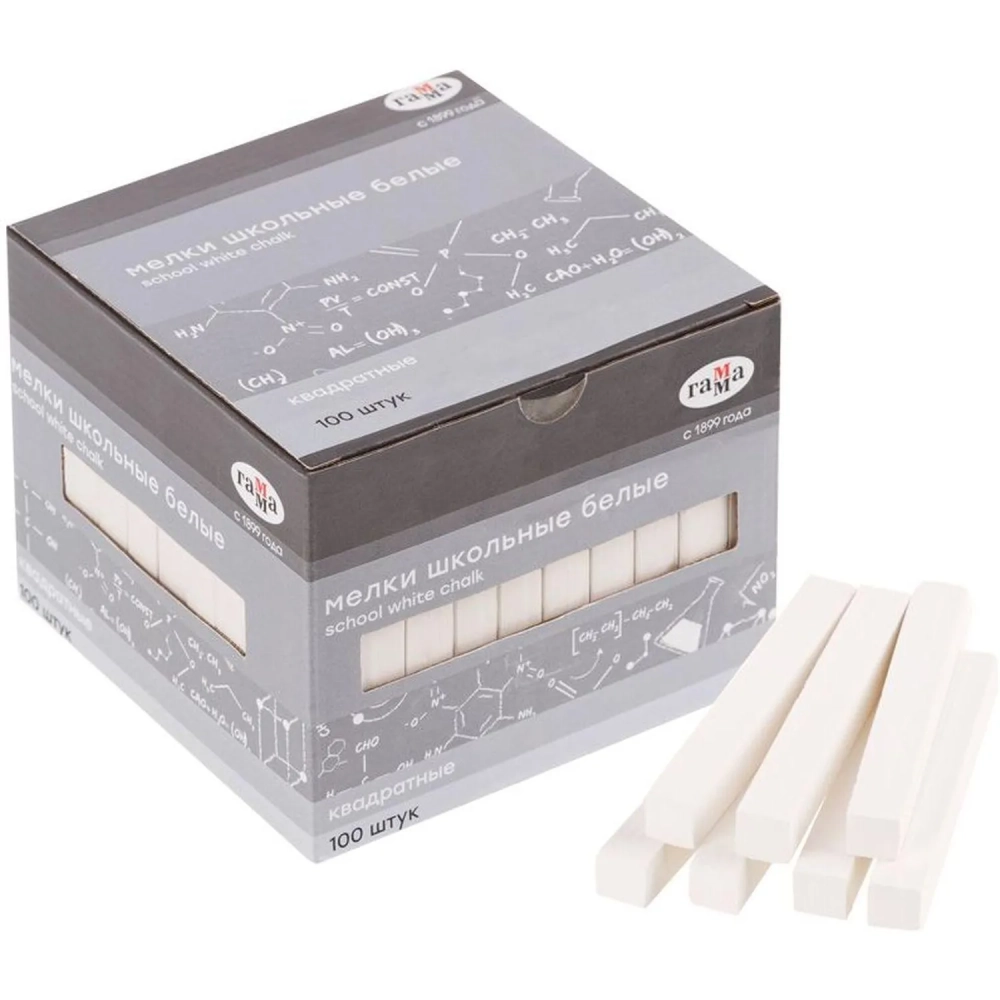 Мел школьный Гамма белые 100 штук, мягкие, квадратные, 2308193